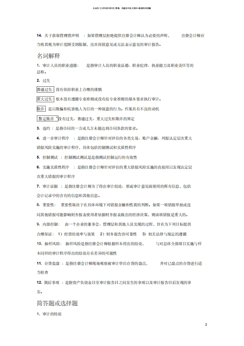 审计学期末考试重点归纳完整版猴哥6个月前发布关注私信0.32MB22页08352审计学期末考试重点归纳完整版此内容为免费资源,请登录后查看¥0 登录查看免费资源 第1页 / 共22页 第2页 / 共22页 第3页 / 共22页 该文档为免费文档,您可直接下载完整版进行阅读 © 版权声明文章版权归作者所有,未经允许请勿转载。THE END《审计学原理》学习资料合集 期末复习 喜欢就支持一下吧点赞52赞赏 分享QQ空间微博QQ好友海报分享复制链接收藏