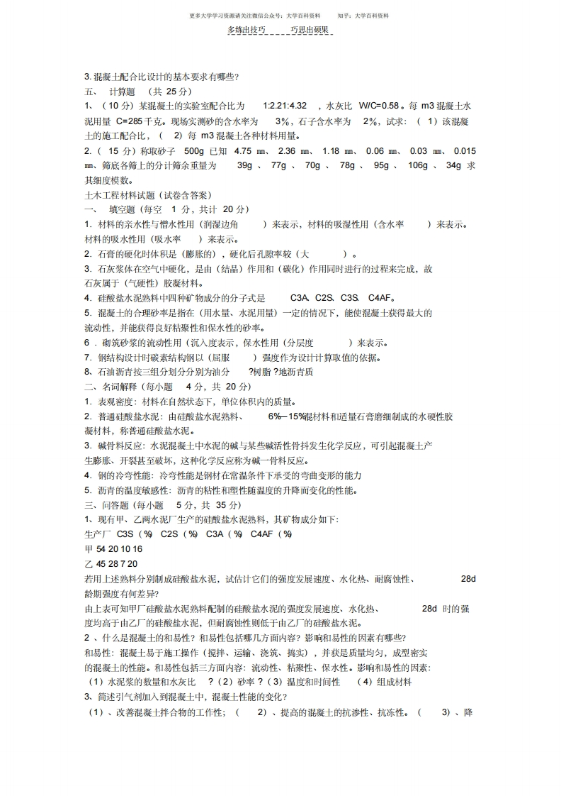 土木工程材料期末试题及答案猴哥6个月前发布关注私信35.02KB3页09665土木工程材料期末试题及答案此内容为免费资源,请登录后查看¥0 登录查看免费资源 第1页 / 共3页 第2页 / 共3页 第3页 / 共3页 已完成全部阅读,共3页 © 版权声明文章版权归作者所有,未经允许请勿转载。THE END《土木工程材料》学习资料合集 期末复习 喜欢就支持一下吧点赞65赞赏 分享QQ空间微博QQ好友海报分享复制链接收藏