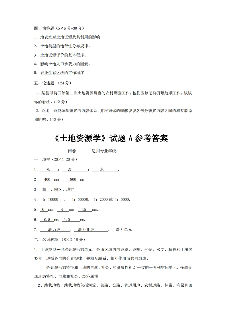 土地资源学考试题及答案猴哥6个月前发布关注私信0.26MB5页08740土地资源学考试题及答案此内容为免费资源,请登录后查看¥0 登录查看免费资源 第1页 / 共5页 第2页 / 共5页 第3页 / 共5页 该文档为免费文档,您可直接下载完整版进行阅读 © 版权声明文章版权归作者所有,未经允许请勿转载。THE END《土地管理学》学习资料合集 期末复习 喜欢就支持一下吧点赞40赞赏 分享QQ空间微博QQ好友海报分享复制链接收藏