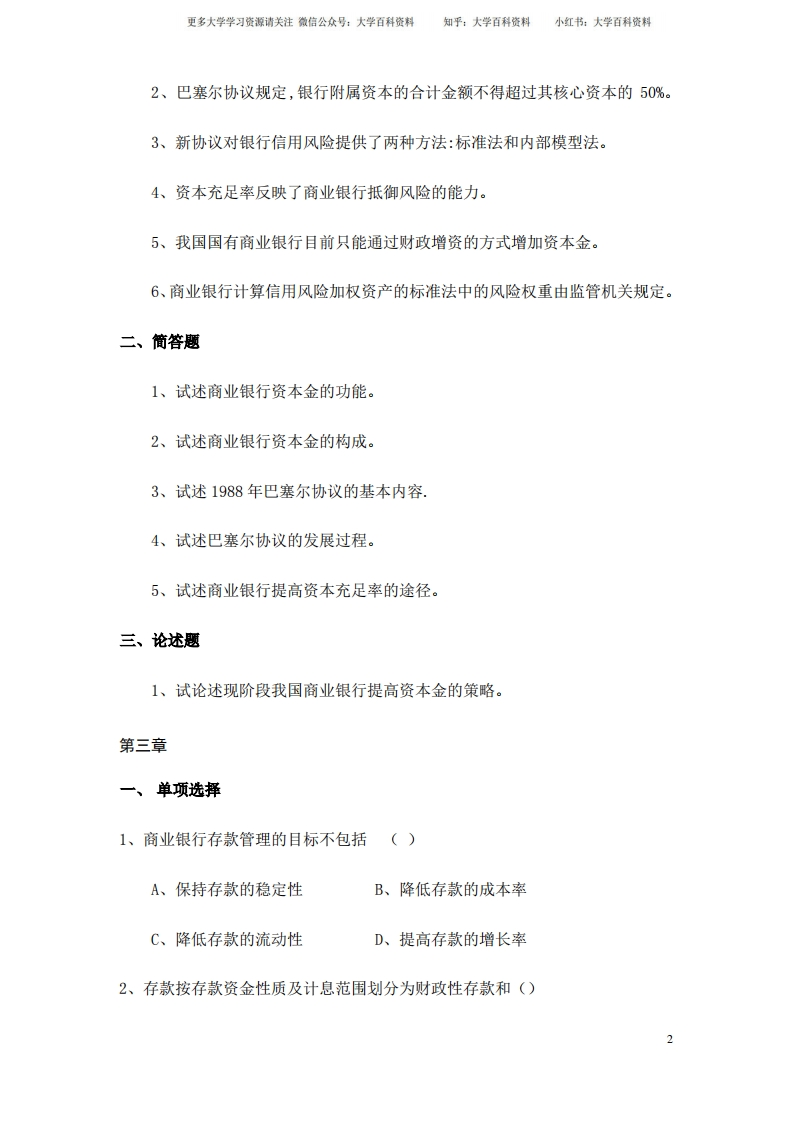 商业银行管理学习题猴哥6个月前发布关注私信1MB35页04866商业银行管理学习题此内容为免费资源,请登录后查看¥0 登录查看免费资源 第1页 / 共35页 第2页 / 共35页 第3页 / 共35页 该文档为免费文档,您可直接下载完整版进行阅读 © 版权声明文章版权归作者所有,未经允许请勿转载。THE END《商业银行管理学》学习资料合集 期末复习 喜欢就支持一下吧点赞66赞赏 分享QQ空间微博QQ好友海报分享复制链接收藏