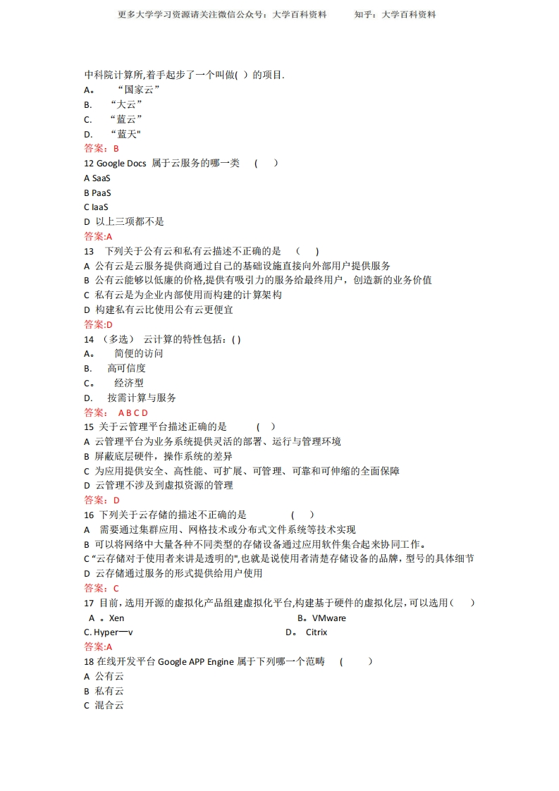 云计算期末习题含答案-学习资源网 - 分享优质学习资料