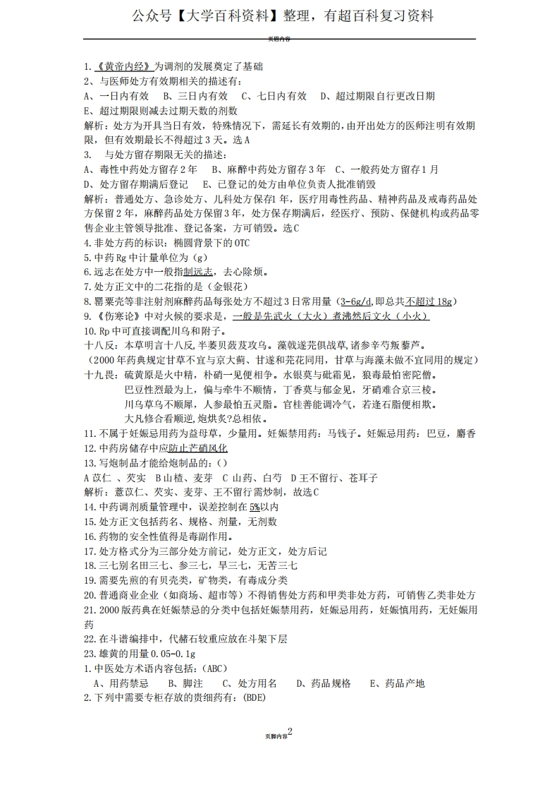 中药调剂学资料(重点总结)猴哥6个月前发布关注私信0.29MB4页04310中药调剂学资料(重点总结)此内容为免费资源,请登录后查看¥0 登录查看免费资源 第1页 / 共4页 第2页 / 共4页 第3页 / 共4页 该文档为免费文档,您可直接下载完整版进行阅读 © 版权声明文章版权归作者所有,未经允许请勿转载。THE END《中药调剂学》学习资料合集 期末复习 喜欢就支持一下吧点赞10赞赏 分享QQ空间微博QQ好友海报分享复制链接收藏