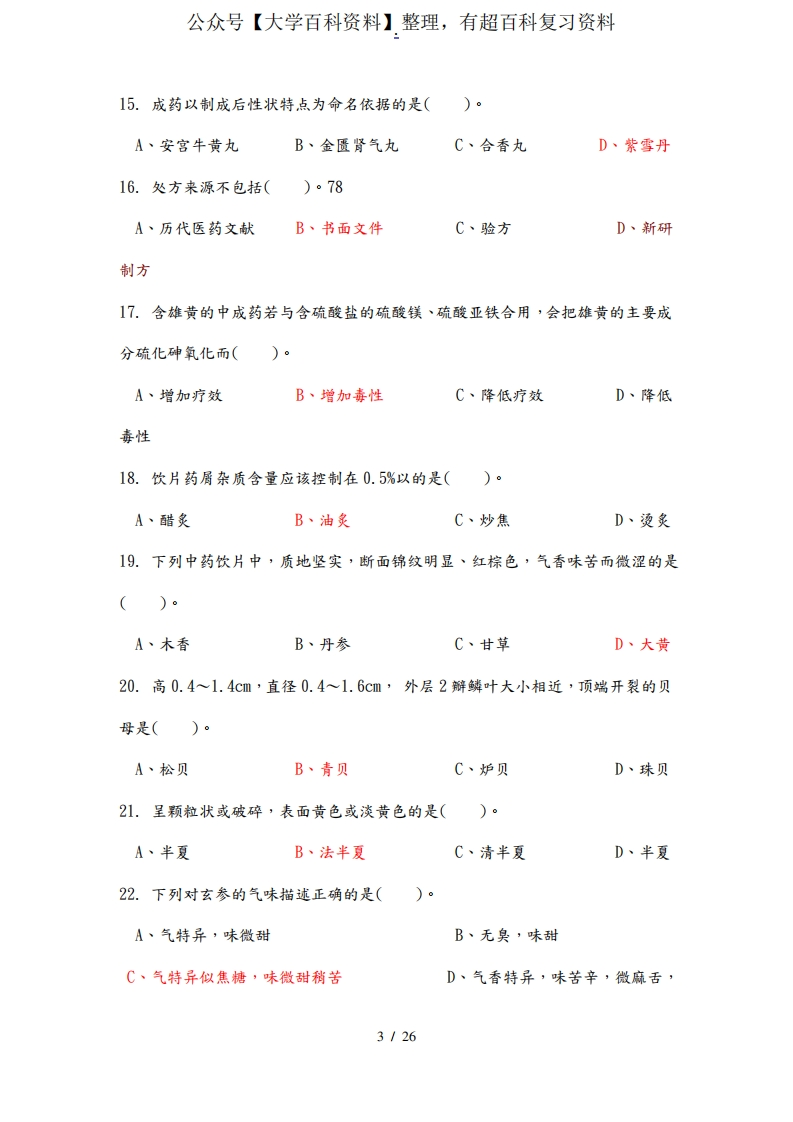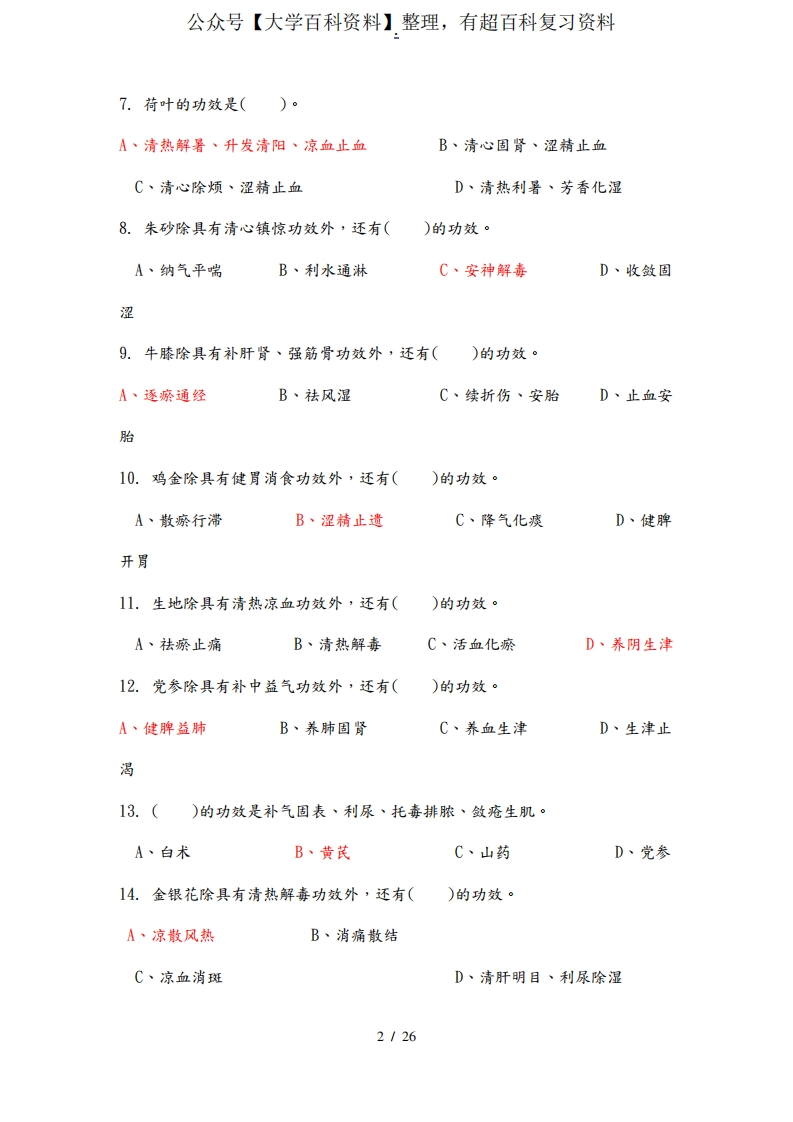 中药调剂试题猴哥6个月前发布关注私信1.45MB26页05940中药调剂试题此内容为免费资源,请登录后查看¥0 登录查看免费资源 第1页 / 共26页 第2页 / 共26页 第3页 / 共26页 该文档为免费文档,您可直接下载完整版进行阅读 © 版权声明文章版权归作者所有,未经允许请勿转载。THE END《中药调剂学》学习资料合集 期末复习 喜欢就支持一下吧点赞40赞赏 分享QQ空间微博QQ好友海报分享复制链接收藏