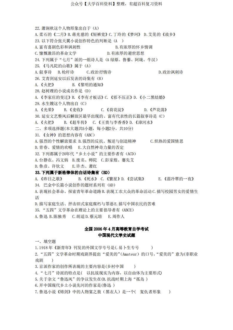 中国现代文学史期末试题练习及答案猴哥6个月前发布关注私信1MB17页09166中国现代文学史期末试题练习及答案此内容为免费资源,请登录后查看¥0 登录查看免费资源 第1页 / 共17页 第2页 / 共17页 第3页 / 共17页 该文档为免费文档,您可直接下载完整版进行阅读 © 版权声明文章版权归作者所有,未经允许请勿转载。THE END《中国当代文学史补充》学习资料合集期末复习 喜欢就支持一下吧点赞66赞赏 分享QQ空间微博QQ好友海报分享复制链接收藏