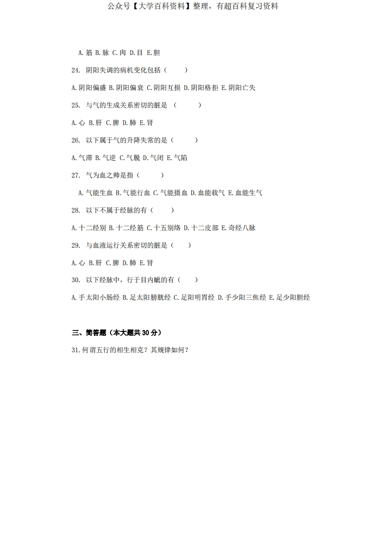 《中医学基础》期末考试试卷附答案猴哥6个月前发布关注私信0.14MB4页05953《中医学基础》期末考试试卷附答案此内容为免费资源,请登录后查看¥0 登录查看免费资源 第1页 / 共4页 第2页 / 共4页 第3页 / 共4页 该文档为免费文档,您可直接下载完整版进行阅读 © 版权声明文章版权归作者所有,未经允许请勿转载。THE END《中医学基础》学习资料合集 期末复习 喜欢就支持一下吧点赞53赞赏 分享QQ空间微博QQ好友海报分享复制链接收藏