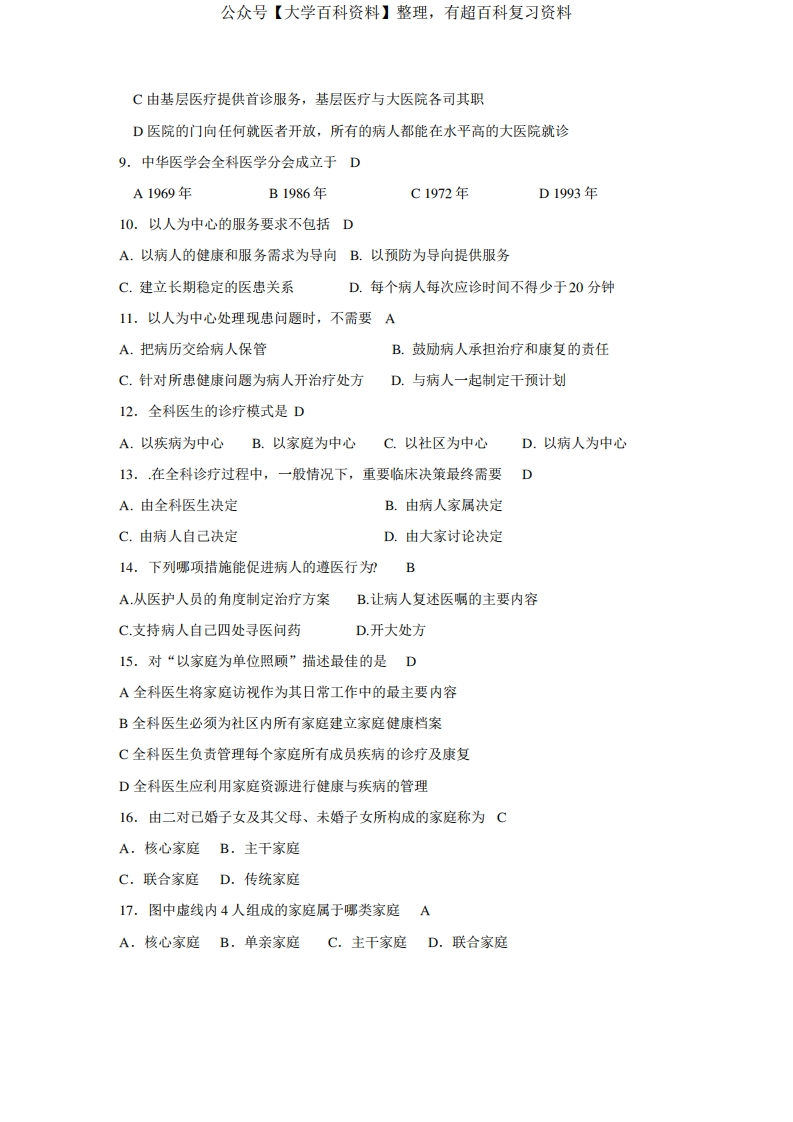 全科医学概论试题库猴哥6个月前发布关注私信0.80MB18页09164全科医学概论试题库此内容为免费资源,请登录后查看¥0 登录查看免费资源 第1页 / 共18页 第2页 / 共18页 第3页 / 共18页 该文档为免费文档,您可直接下载完整版进行阅读 © 版权声明文章版权归作者所有,未经允许请勿转载。THE END《中医全科医学概论》学习资料合集 期末复习 喜欢就支持一下吧点赞64赞赏 分享QQ空间微博QQ好友海报分享复制链接收藏