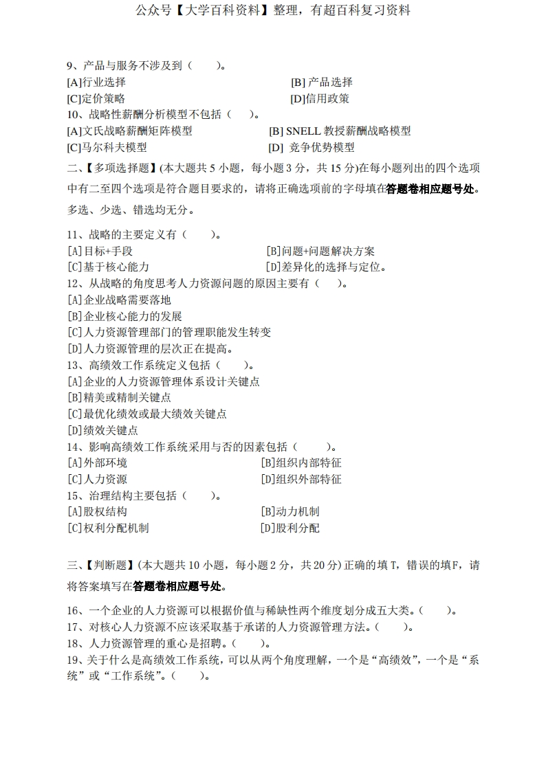 人力资源战略与规划模拟试卷和答案猴哥6个月前发布关注私信0.51MB13页09863人力资源战略与规划模拟试卷和答案此内容为免费资源,请登录后查看¥0 登录查看免费资源 第1页 / 共13页 第2页 / 共13页 第3页 / 共13页 该文档为免费文档,您可直接下载完整版进行阅读 © 版权声明文章版权归作者所有,未经允许请勿转载。THE END《人力资源战略与规划》学习资料合集 期末复习 喜欢就支持一下吧点赞63赞赏 分享QQ空间微博QQ好友海报分享复制链接收藏