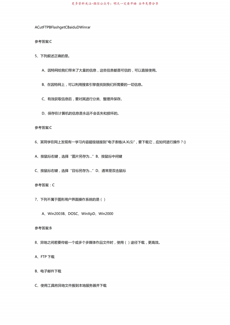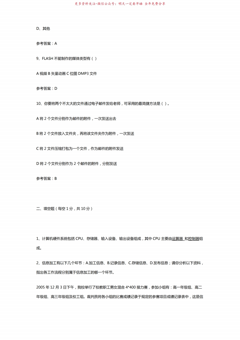 信息技术模拟试题及其参考答案猴哥6个月前发布关注私信3.86MB15页09123信息技术模拟试题及其参考答案此内容为免费资源,请登录后查看¥0 登录查看免费资源 第1页 / 共15页 第2页 / 共15页 第3页 / 共15页 该文档为免费文档,您可直接下载完整版进行阅读 © 版权声明文章版权归作者所有,未经允许请勿转载。THE END《信息技术概论》学习资料合集期末复习 喜欢就支持一下吧点赞23赞赏 分享QQ空间微博QQ好友海报分享复制链接收藏