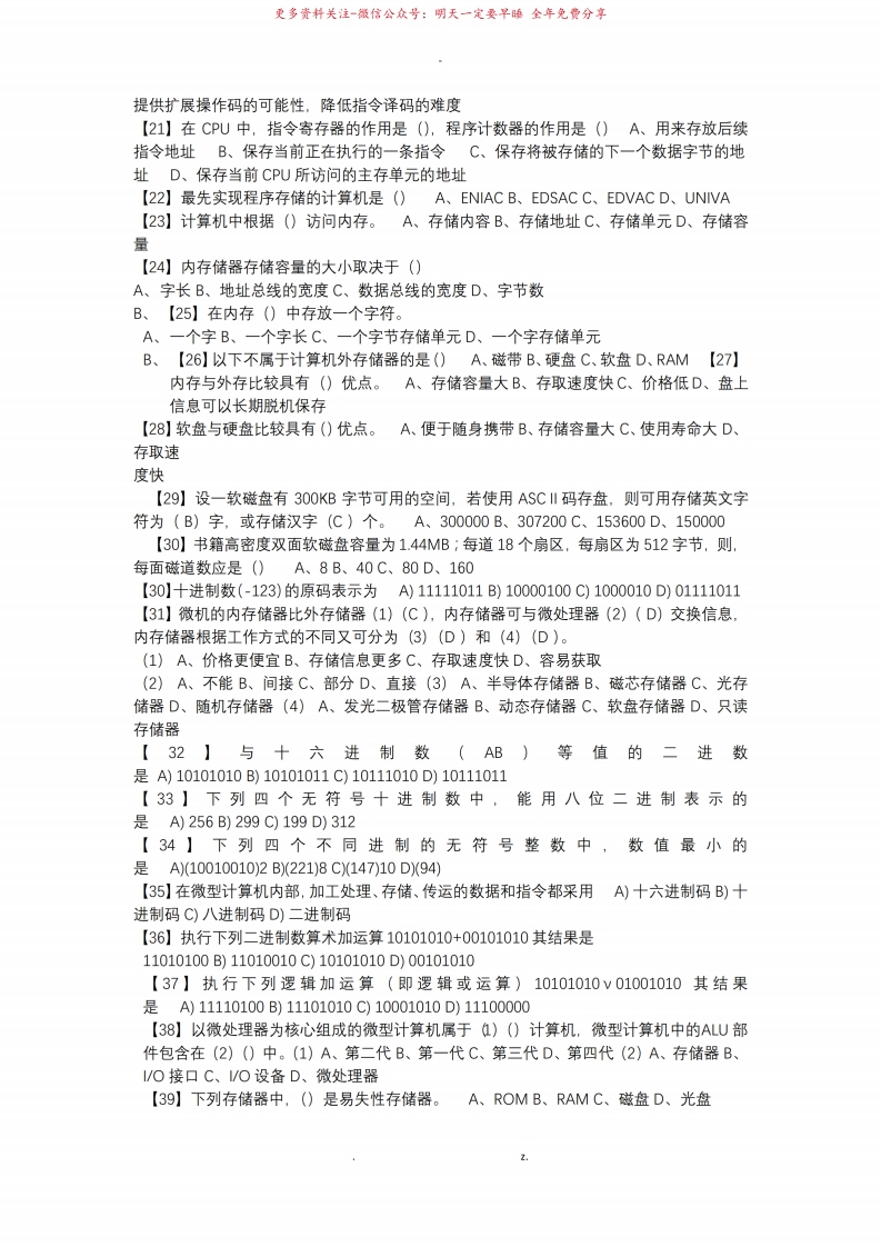 大学计算机基础理论考试复习题猴哥6个月前发布关注私信8.50MB9页07320大学计算机基础理论考试复习题此内容为免费资源,请登录后查看¥0 登录查看免费资源 第1页 / 共9页 第2页 / 共9页 第3页 / 共9页 该文档为免费文档,您可直接下载完整版进行阅读 © 版权声明文章版权归作者所有,未经允许请勿转载。THE END《计算机系统基础》学习资料合集期末复习 喜欢就支持一下吧点赞20赞赏 分享QQ空间微博QQ好友海报分享复制链接收藏