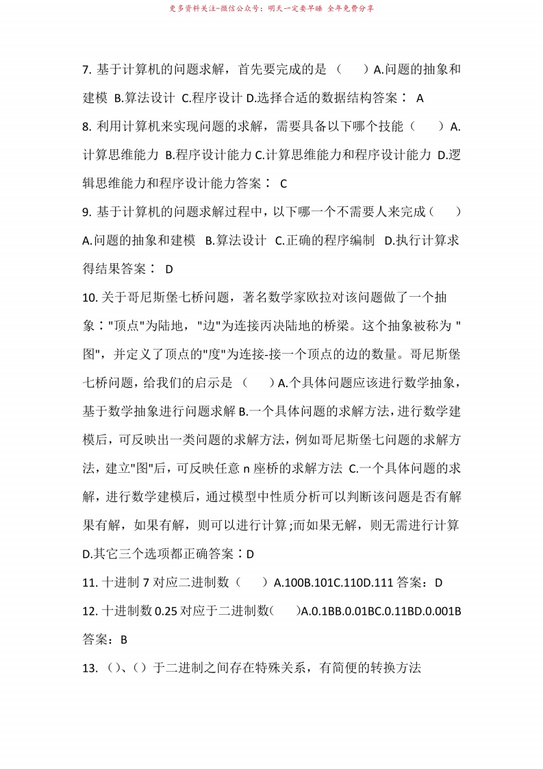 计算机基础知识试题带答案猴哥6个月前发布关注私信6.66MB12页08724计算机基础知识试题带答案此内容为免费资源,请登录后查看¥0 登录查看免费资源 第1页 / 共12页 第2页 / 共12页 第3页 / 共12页 该文档为免费文档,您可直接下载完整版进行阅读 © 版权声明文章版权归作者所有,未经允许请勿转载。THE END《计算思维基础》学习资料合集期末复习 喜欢就支持一下吧点赞24赞赏 分享QQ空间微博QQ好友海报分享复制链接收藏