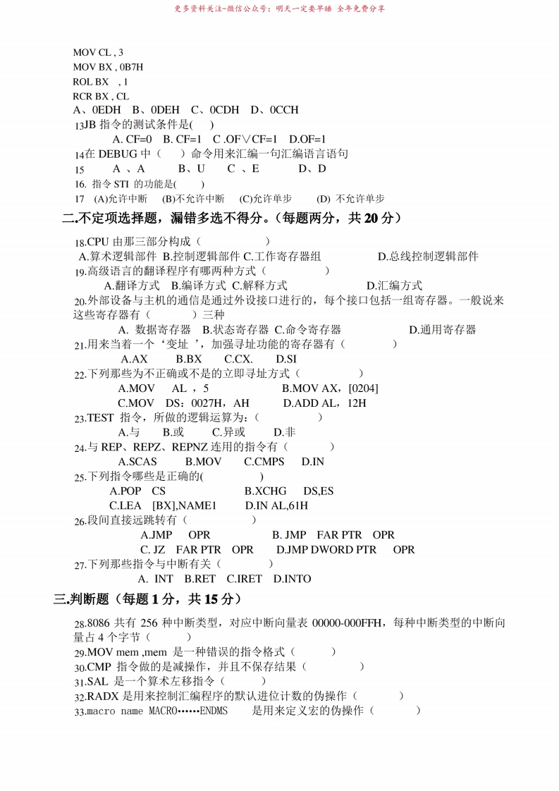 汇编语言程序设计试题和答案猴哥6个月前发布关注私信5.06MB10页09820汇编语言程序设计试题和答案此内容为免费资源,请登录后查看¥0 登录查看免费资源 第1页 / 共10页 第2页 / 共10页 第3页 / 共10页 该文档为免费文档,您可直接下载完整版进行阅读 © 版权声明文章版权归作者所有,未经允许请勿转载。THE END《汇编语言程序设计》学习资料合集期末复习 喜欢就支持一下吧点赞20赞赏 分享QQ空间微博QQ好友海报分享复制链接收藏