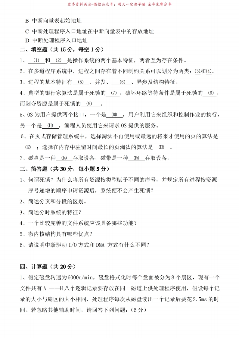 计算机操作系统期末考试试卷及答案猴哥6个月前发布关注私信4.82MB10页04148计算机操作系统期末考试试卷及答案此内容为免费资源,请登录后查看¥0 登录查看免费资源 第1页 / 共10页 第2页 / 共10页 第3页 / 共10页 该文档为免费文档,您可直接下载完整版进行阅读 © 版权声明文章版权归作者所有,未经允许请勿转载。THE END《操作系统 - 副本》学习资料合集《操作系统》学习资料合集期末复习 喜欢就支持一下吧点赞48赞赏 分享QQ空间微博QQ好友海报分享复制链接收藏