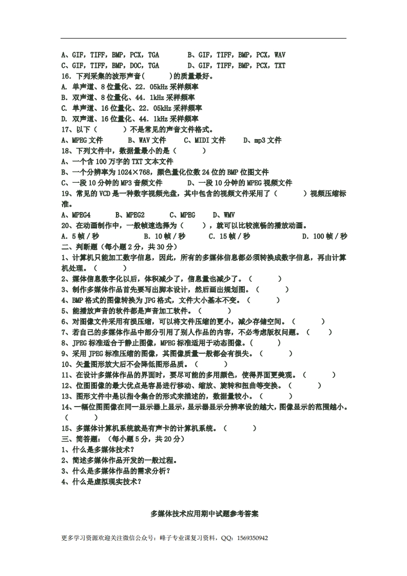 【多媒体技术与应用】多媒体技术应用试题以及答案(1)副本1猴哥6个月前发布关注私信0.11MB3页07243【多媒体技术与应用】多媒体技术应用试题以及答案(1)副本1此内容为免费资源,请登录后查看¥0 登录查看免费资源 第1页 / 共3页 第2页 / 共3页 第3页 / 共3页 已完成全部阅读,共3页 © 版权声明文章版权归作者所有,未经允许请勿转载。THE END《多媒体技术与应用》学习资料合集期末复习 喜欢就支持一下吧点赞43赞赏 分享QQ空间微博QQ好友海报分享复制链接收藏