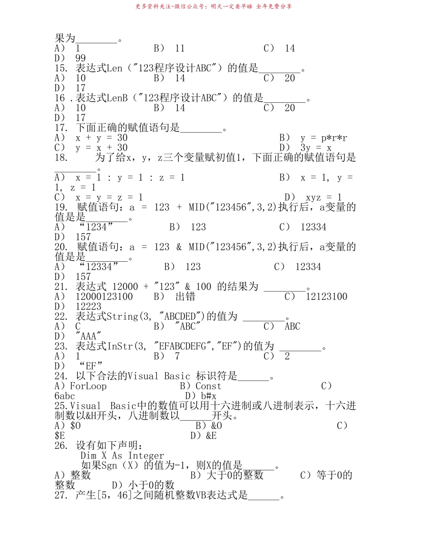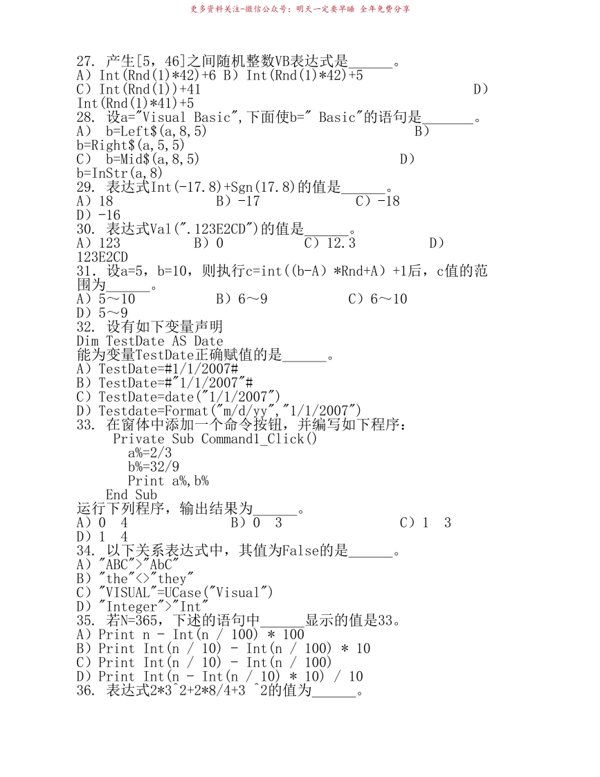 VisualBasic语言基础试卷带答案猴哥6个月前发布关注私信5.86MB11页03745VisualBasic语言基础试卷带答案此内容为免费资源,请登录后查看¥0 登录查看免费资源 第1页 / 共11页 第2页 / 共11页 第3页 / 共11页 该文档为免费文档,您可直接下载完整版进行阅读 © 版权声明文章版权归作者所有,未经允许请勿转载。THE END《visualbasic》学习资料合集期末复习 喜欢就支持一下吧点赞45赞赏 分享QQ空间微博QQ好友海报分享复制链接收藏