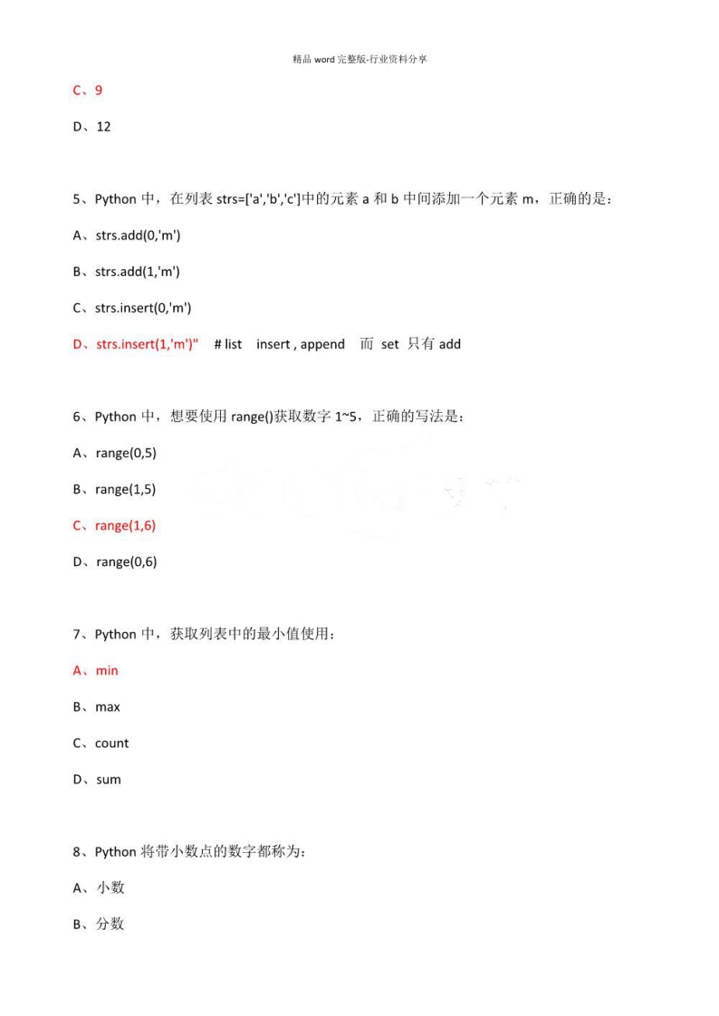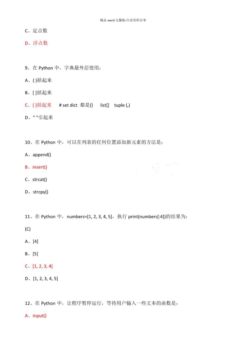 【python】考试最新试题及答案解析资料(1)猴哥3个月前更新关注私信3.29MB72页09357【python】考试最新试题及答案解析资料(1)此内容为免费资源,请登录后查看¥0 登录查看免费资源 第1页 / 共72页 第2页 / 共72页 第3页 / 共72页 该文档为免费文档,您可直接下载完整版进行阅读 © 版权声明文章版权归作者所有,未经允许请勿转载。THE END《python》学习资料合集期末复习 喜欢就支持一下吧点赞57赞赏 分享QQ空间微博QQ好友海报分享复制链接收藏