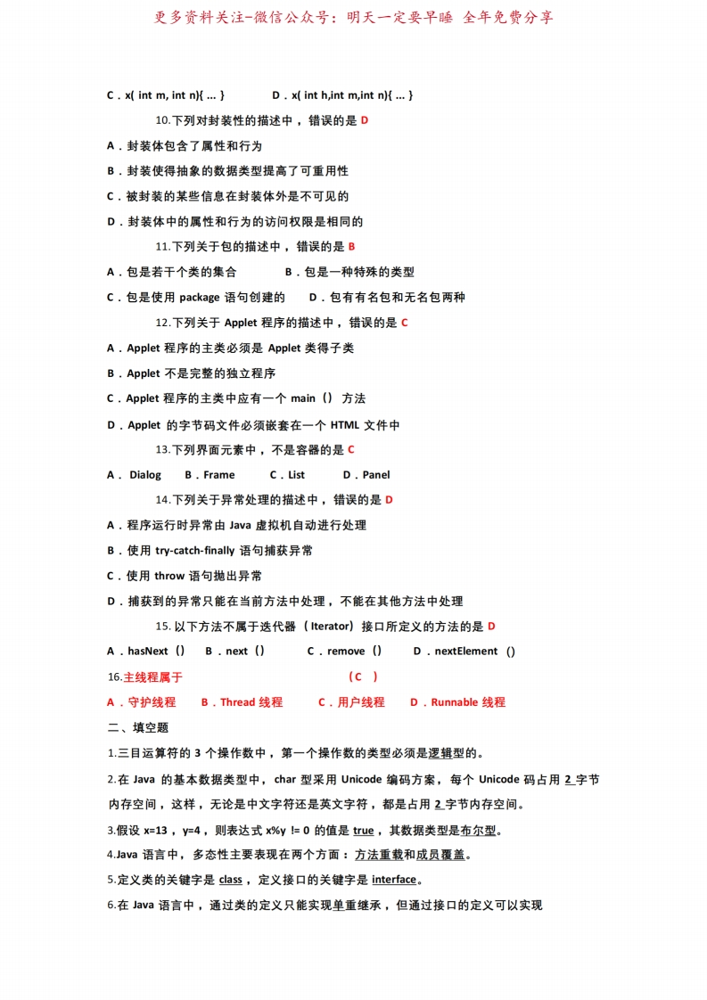 面向对象程序设计JAVA语言程序设计期末考试试题及部分答案猴哥6个月前发布关注私信3.81MB15页06017面向对象程序设计JAVA语言程序设计期末考试试题及部分答案此内容为免费资源,请登录后查看¥0 登录查看免费资源 第1页 / 共15页 第2页 / 共15页 第3页 / 共15页 该文档为免费文档,您可直接下载完整版进行阅读 © 版权声明文章版权归作者所有,未经允许请勿转载。THE END《java面向对象程序设计》学习资料合集期末复习 喜欢就支持一下吧点赞17赞赏 分享QQ空间微博QQ好友海报分享复制链接收藏
