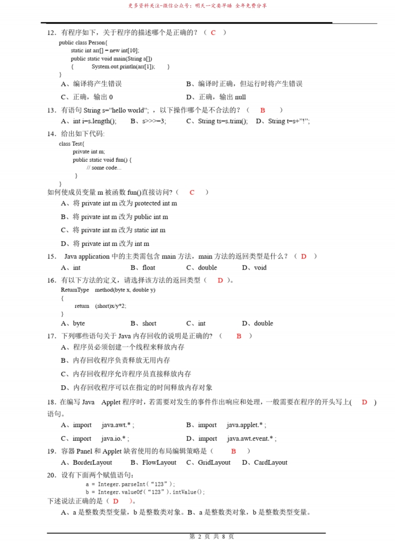 JAVA期末考试试卷及答案猴哥6个月前发布关注私信8.95MB8页09152JAVA期末考试试卷及答案此内容为免费资源,请登录后查看¥0 登录查看免费资源 第1页 / 共8页 第2页 / 共8页 第3页 / 共8页 该文档为免费文档,您可直接下载完整版进行阅读 © 版权声明文章版权归作者所有,未经允许请勿转载。THE END《java》学习资料合集期末复习 喜欢就支持一下吧点赞52赞赏 分享QQ空间微博QQ好友海报分享复制链接收藏