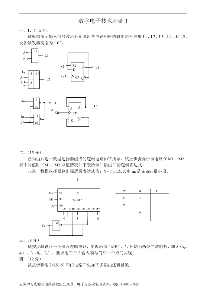 【数字电子技术基础】试卷8套-学习资源网 - 分享优质学习资料