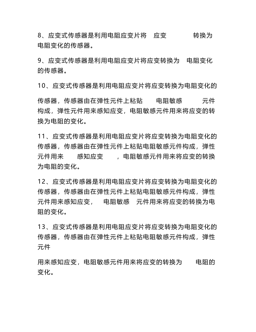 【传感器与检测技术】期末考试试卷及答案猴哥6个月前发布关注私信0.19MB49页06352【传感器与检测技术】期末考试试卷及答案此内容为免费资源,请登录后查看¥0 登录查看免费资源 第1页 / 共49页 第2页 / 共49页 第3页 / 共49页 该文档为免费文档,您可直接下载完整版进行阅读 © 版权声明文章版权归作者所有,未经允许请勿转载。THE END《传感器与检测技术》学习资料合集期末复习 喜欢就支持一下吧点赞52赞赏 分享QQ空间微博QQ好友海报分享复制链接收藏