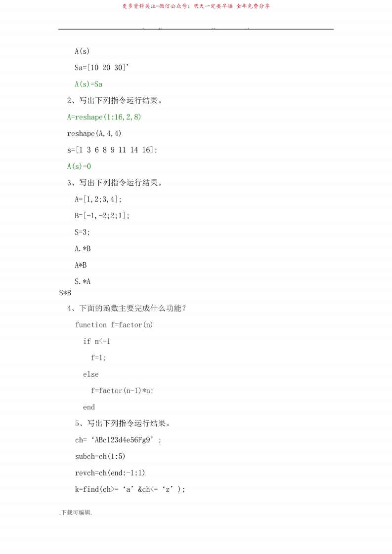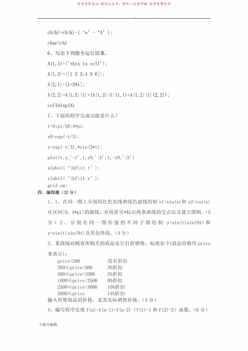 MATLAB期末考试卷和参考答案..59773-学习资源网 - 分享优质学习资料