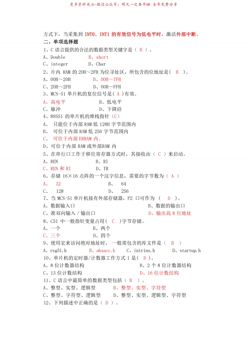 51单片机期末考试试卷及答案-学习资源网 - 分享优质学习资料