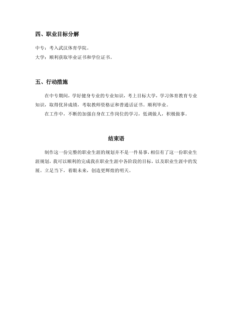 2页500字健身职业生涯规划书猴哥6个月前更新关注私信18.40KB2页081192页500字健身职业生涯规划书此内容为免费资源,请登录后查看¥0 登录查看免费资源 第1页 / 共2页 第2页 / 共2页 已完成全部阅读,共2页 © 版权声明文章版权归作者所有,未经允许请勿转载。THE END《大学生职业生涯规划》学习资料合集期末复习职业规划 喜欢就支持一下吧点赞19赞赏 分享QQ空间微博QQ好友海报分享复制链接收藏