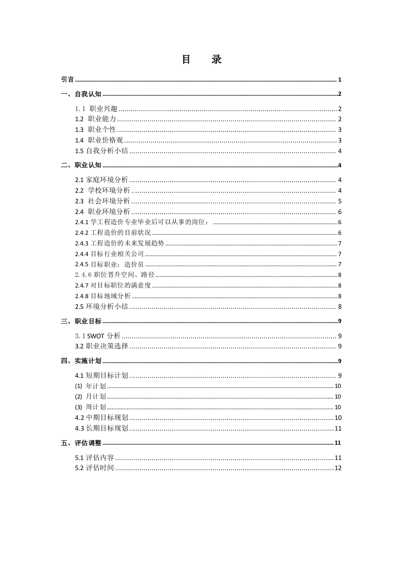 15页6800字工程造价职业生涯规划书