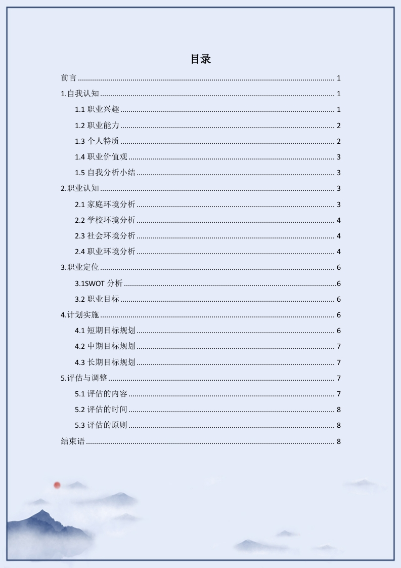 11页4600字环境设计职业生涯规划书猴哥6个月前更新关注私信0.16MB11页0451711页4600字环境设计职业生涯规划书此内容为免费资源,请登录后查看¥0 登录查看免费资源 第1页 / 共11页 第2页 / 共11页 第3页 / 共11页 该文档为免费文档,您可直接下载完整版进行阅读 © 版权声明文章版权归作者所有,未经允许请勿转载。THE END《大学生职业生涯规划》学习资料合集期末复习职业规划 喜欢就支持一下吧点赞17赞赏 分享QQ空间微博QQ好友海报分享复制链接收藏