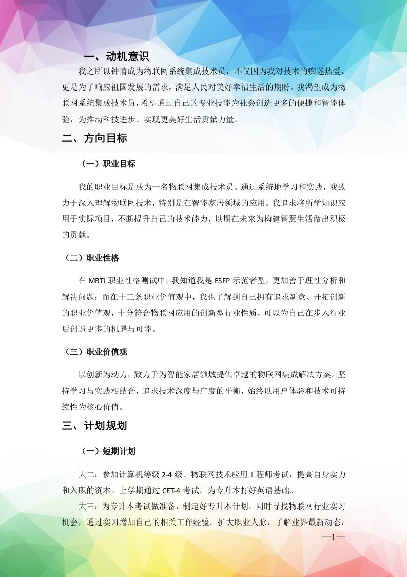 物联网应用-成长赛道职业生涯规划书-学习资源网 - 分享优质学习资料