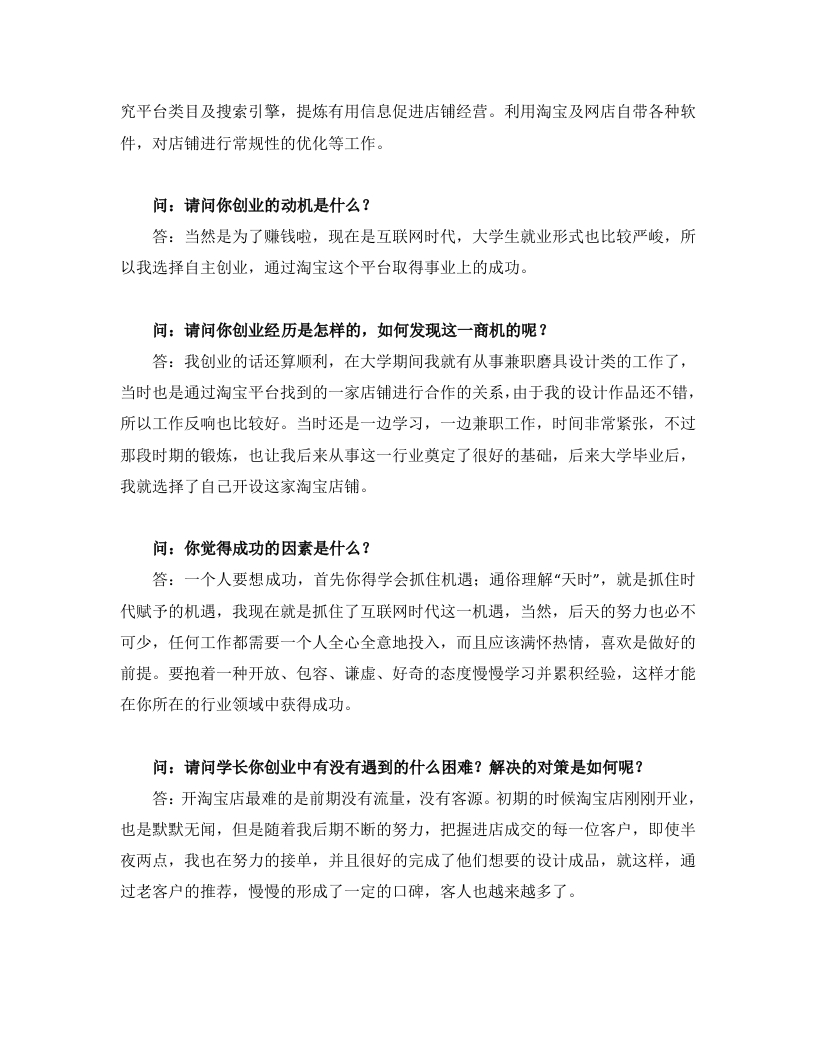1600字淘宝店主人物访谈职业生涯规划书猴哥6个月前更新关注私信3.09MB6页057501600字淘宝店主人物访谈职业生涯规划书此内容为免费资源,请登录后查看¥0 登录查看免费资源 第1页 / 共6页 第2页 / 共6页 第3页 / 共6页 该文档为免费文档,您可直接下载完整版进行阅读 © 版权声明文章版权归作者所有,未经允许请勿转载。THE END《大学生职业生涯规划》学习资料合集期末复习职业规划 喜欢就支持一下吧点赞50赞赏 分享QQ空间微博QQ好友海报分享复制链接收藏