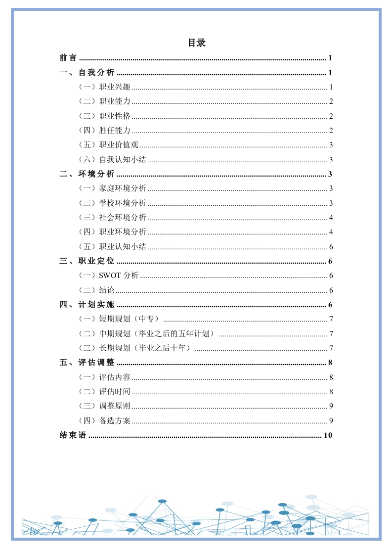 11页4800字美容美体艺术职业生涯规划书猴哥6个月前更新关注私信3.32MB12页0404511页4800字美容美体艺术职业生涯规划书此内容为免费资源,请登录后查看¥0 登录查看免费资源 第1页 / 共12页 第2页 / 共12页 第3页 / 共12页 该文档为免费文档,您可直接下载完整版进行阅读 © 版权声明文章版权归作者所有,未经允许请勿转载。THE END《大学生职业生涯规划》学习资料合集期末复习职业规划 喜欢就支持一下吧点赞45赞赏 分享QQ空间微博QQ好友海报分享复制链接收藏