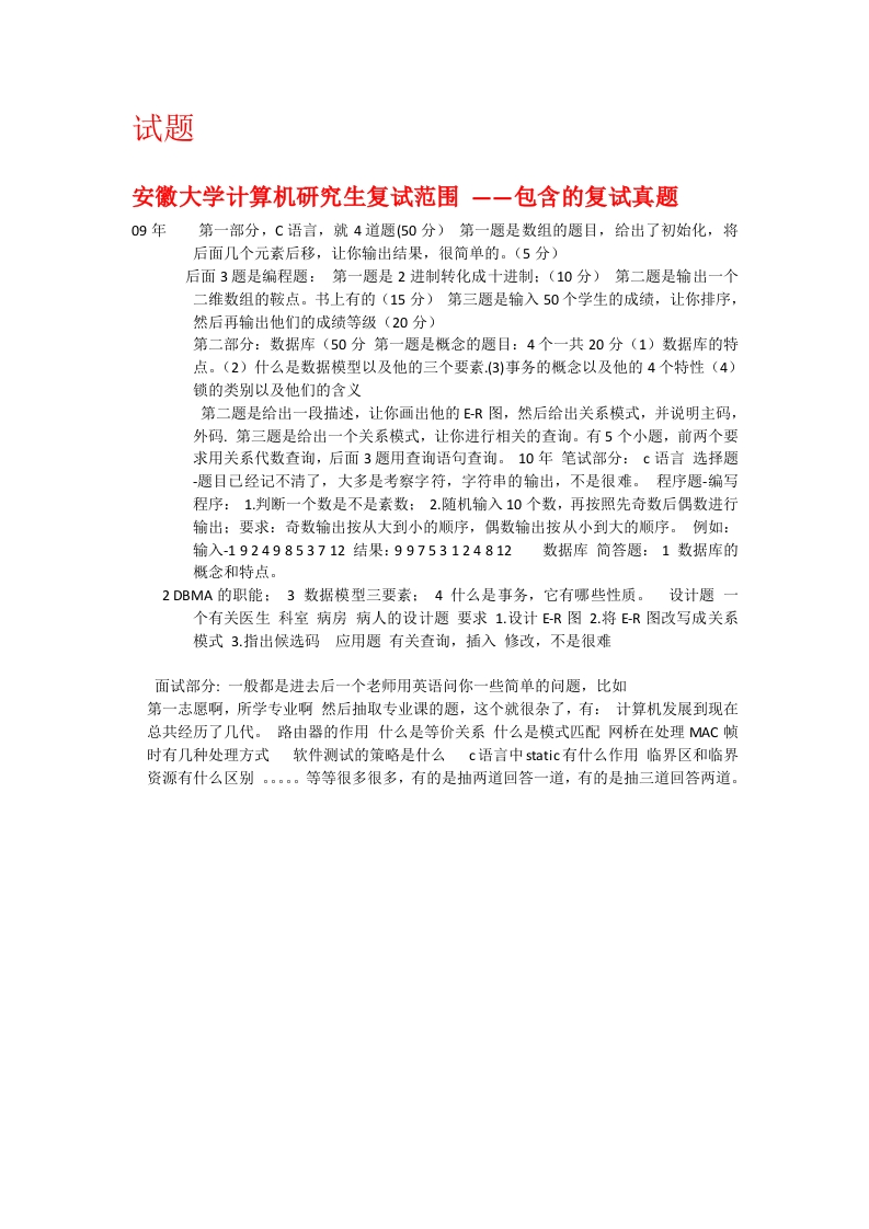 安徽大学计算机考研复试题猴哥6个月前发布关注私信20.31KB3页09754安徽大学计算机考研复试题此内容为免费资源,请登录后查看¥0 登录查看免费资源 第1页 / 共3页 第2页 / 共3页 第3页 / 共3页 已完成全部阅读,共3页 © 版权声明文章版权归作者所有,未经允许请勿转载。THE END考研专业课 喜欢就支持一下吧点赞54赞赏 分享QQ空间微博QQ好友海报分享复制链接收藏