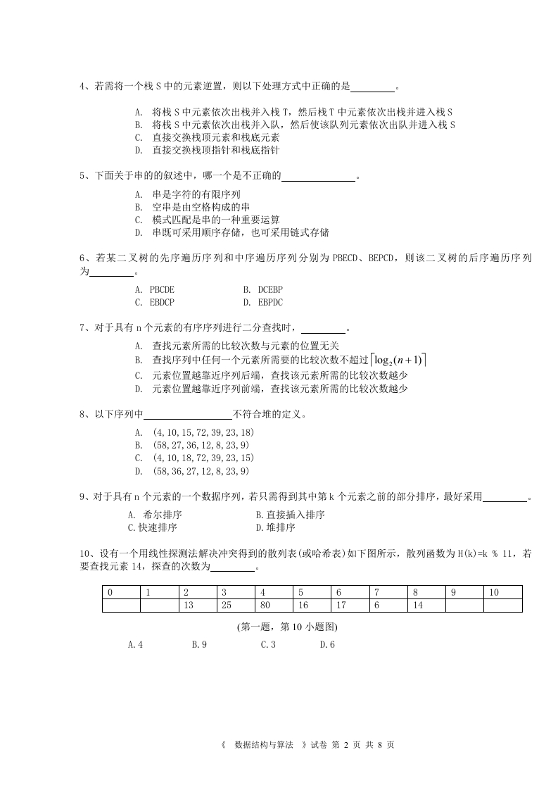 安徽大学数据结构与算法2010—2011学年第2学期期末试卷猴哥6个月前发布关注私信83.15KB8页04638安徽大学数据结构与算法2010—2011学年第2学期期末试卷此内容为免费资源,请登录后查看¥0 登录查看免费资源 第1页 / 共8页 第2页 / 共8页 第3页 / 共8页 该文档为免费文档,您可直接下载完整版进行阅读 © 版权声明文章版权归作者所有,未经允许请勿转载。THE END考研专业课 喜欢就支持一下吧点赞38赞赏 分享QQ空间微博QQ好友海报分享复制链接收藏