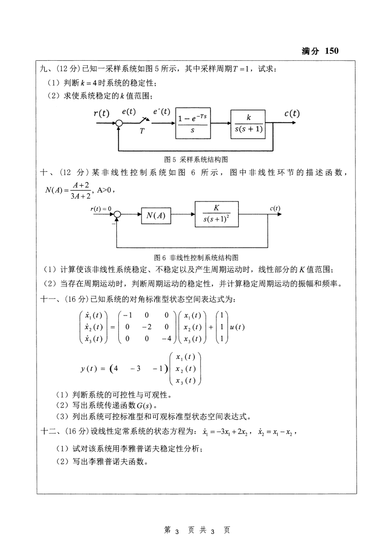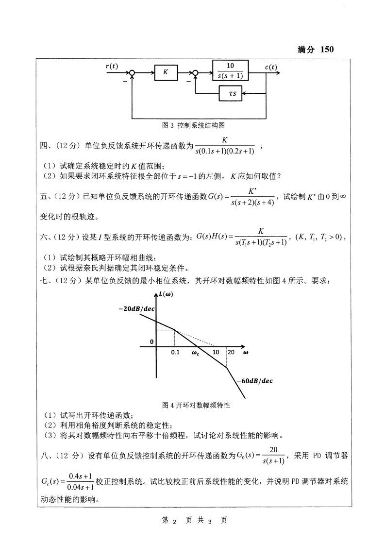 安徽大学831自动控制理论考研真题
