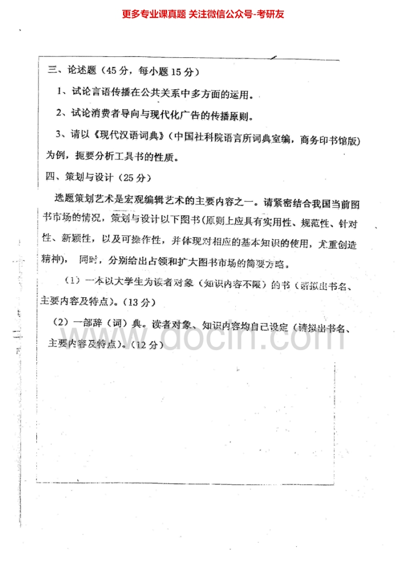 安徽大学812新闻传播实务2004-2006、2008,2011-2014(回忆版)考研真题汇编猴哥6个月前发布关注私信1.64MB11页05129安徽大学812新闻传播实务2004-2006、2008,2011-2014(回忆版)考研真题汇编此内容为免费资源,请登录后查看¥0 登录查看免费资源 第1页 / 共11页 第2页 / 共11页 第3页 / 共11页 该文档为免费文档,您可直接下载完整版进行阅读 © 版权声明文章版权归作者所有,未经允许请勿转载。THE END《安徽大学》(812)英语综合知识考研资料考研专业课 喜欢就支持一下吧点赞29赞赏 分享QQ空间微博QQ好友海报分享复制链接收藏