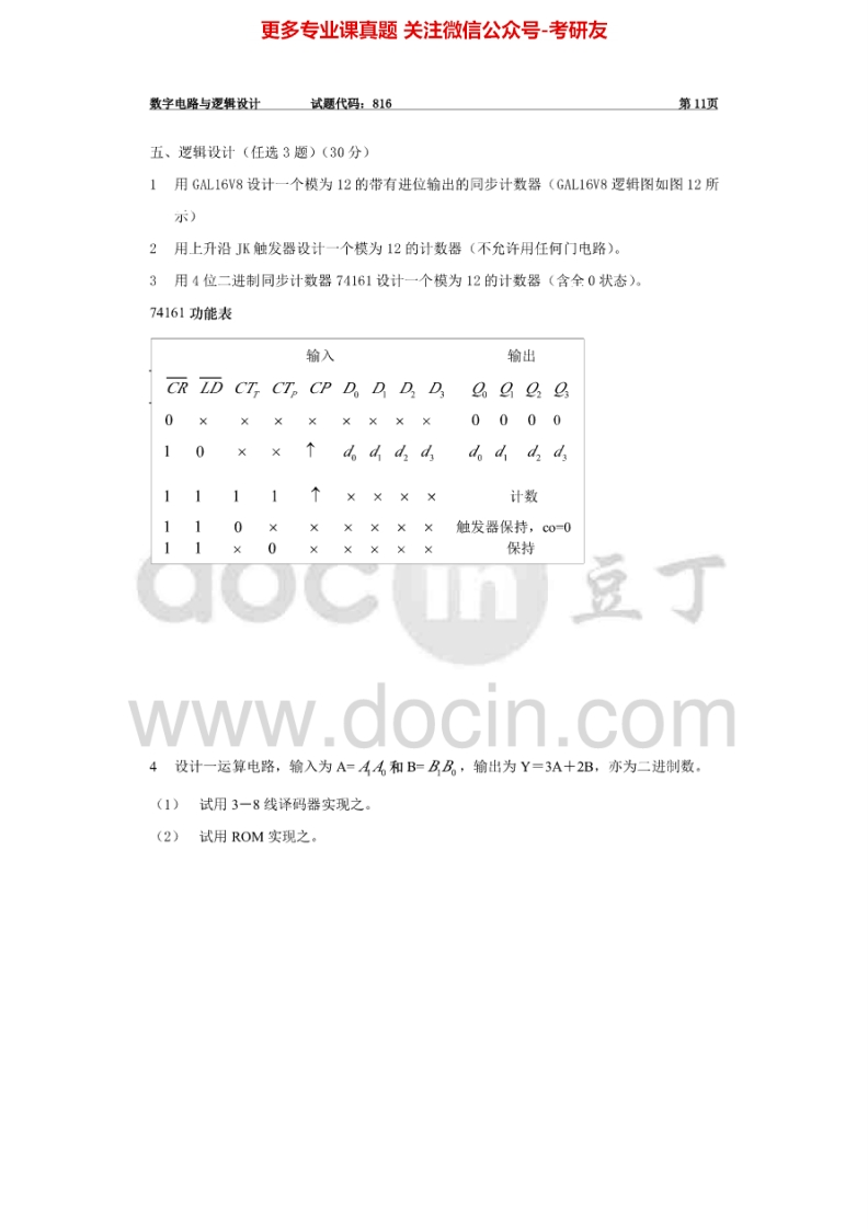 安徽大学数字电路与逻辑设计2002年考研真题猴哥6个月前发布关注私信0.29MB4页03319安徽大学数字电路与逻辑设计2002年考研真题此内容为免费资源,请登录后查看¥0 登录查看免费资源 第1页 / 共4页 第2页 / 共4页 第3页 / 共4页 第4页 / 共4页 已完成全部阅读,共4页 © 版权声明文章版权归作者所有,未经允许请勿转载。THE END考研专业课 喜欢就支持一下吧点赞19赞赏 分享QQ空间微博QQ好友海报分享复制链接收藏