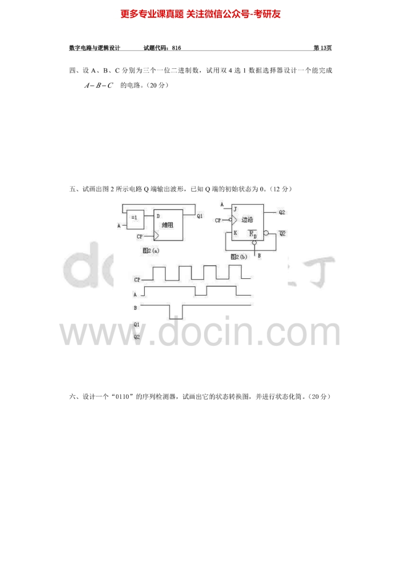 安徽大学数字电路与逻辑设计2003年考研真题猴哥6个月前发布关注私信0.30MB4页08427安徽大学数字电路与逻辑设计2003年考研真题此内容为免费资源,请登录后查看¥0 登录查看免费资源 第1页 / 共4页 第2页 / 共4页 第3页 / 共4页 第4页 / 共4页 已完成全部阅读,共4页 © 版权声明文章版权归作者所有,未经允许请勿转载。THE END考研专业课 喜欢就支持一下吧点赞27赞赏 分享QQ空间微博QQ好友海报分享复制链接收藏