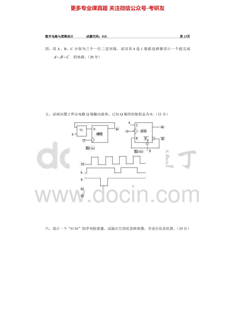 安徽大学829数字电路与逻辑设计2003年考研真题猴哥6个月前发布关注私信0.29MB4页05558安徽大学829数字电路与逻辑设计2003年考研真题此内容为免费资源,请登录后查看¥0 登录查看免费资源 第1页 / 共4页 第2页 / 共4页 第3页 / 共4页 第4页 / 共4页 已完成全部阅读,共4页 © 版权声明文章版权归作者所有,未经允许请勿转载。THE END《安徽大学》(829)环境科学导论考研资料考研专业课 喜欢就支持一下吧点赞58赞赏 分享QQ空间微博QQ好友海报分享复制链接收藏