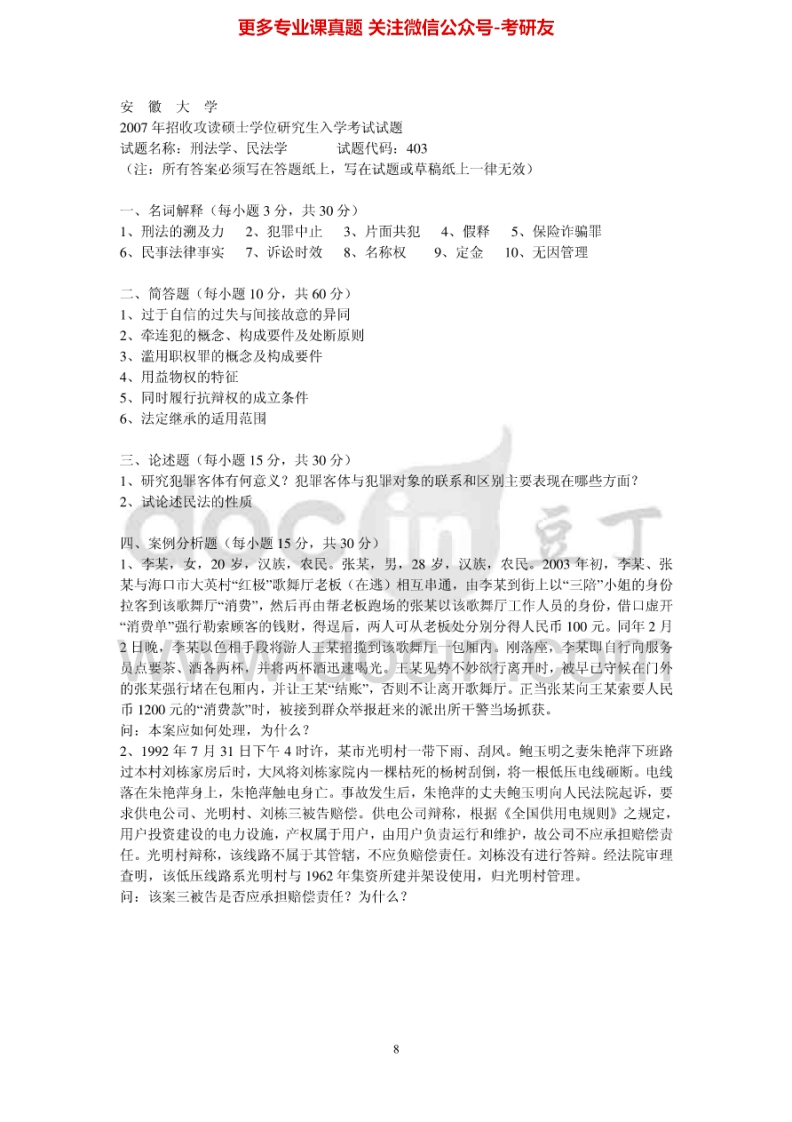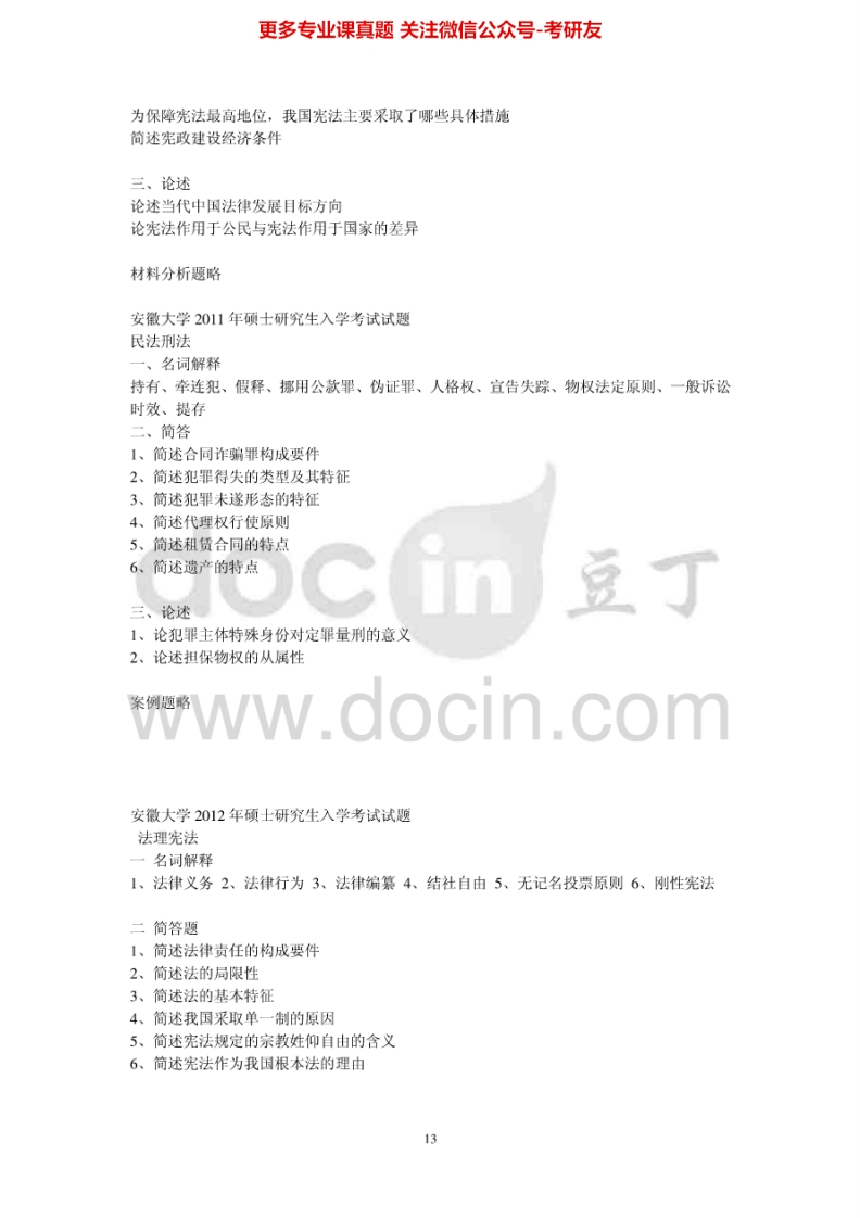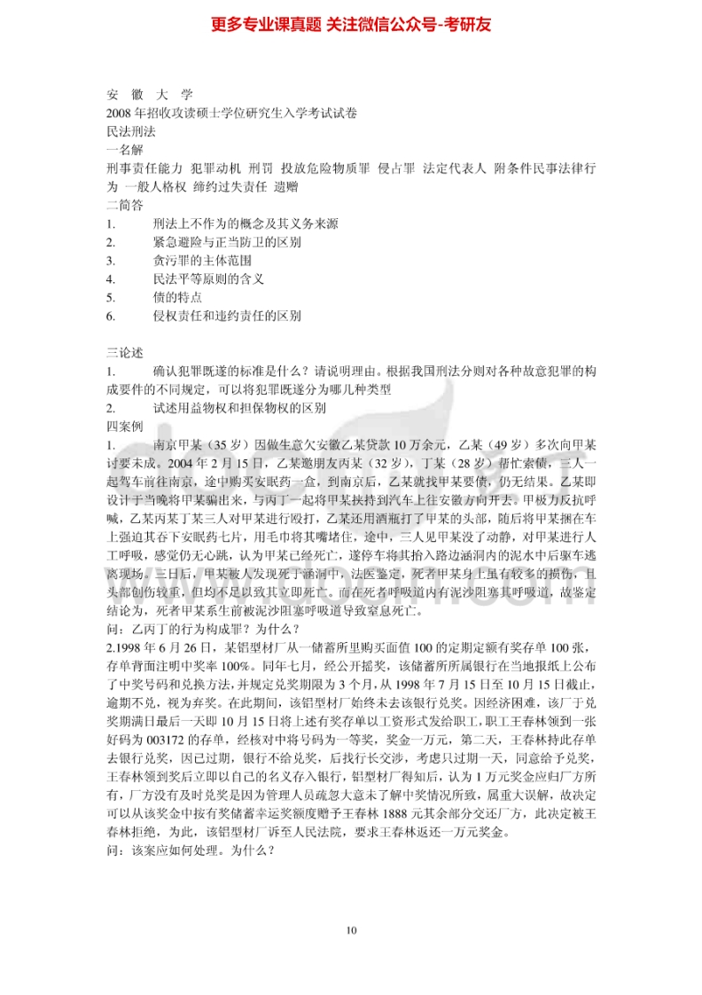 安徽大学刑法学和民法学2002-2012考研真题汇编-学习资源网 - 学习助手专注分享优质学习资源