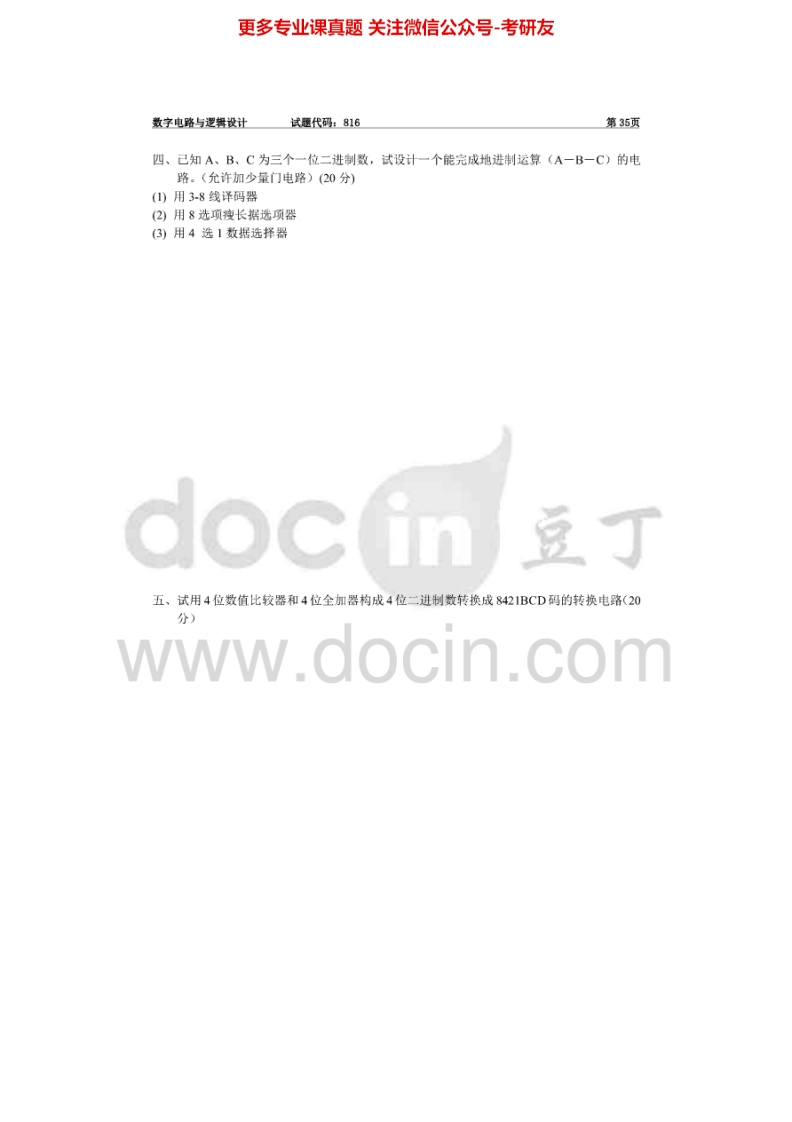 安徽大学829数字电路与逻辑设计2008年考研真题猴哥6个月前发布关注私信0.25MB4页06028安徽大学829数字电路与逻辑设计2008年考研真题此内容为免费资源,请登录后查看¥0 登录查看免费资源 第1页 / 共4页 第2页 / 共4页 第3页 / 共4页 第4页 / 共4页 已完成全部阅读,共4页 © 版权声明文章版权归作者所有,未经允许请勿转载。THE END《安徽大学》(829)环境科学导论考研资料考研专业课 喜欢就支持一下吧点赞28赞赏 分享QQ空间微博QQ好友海报分享复制链接收藏