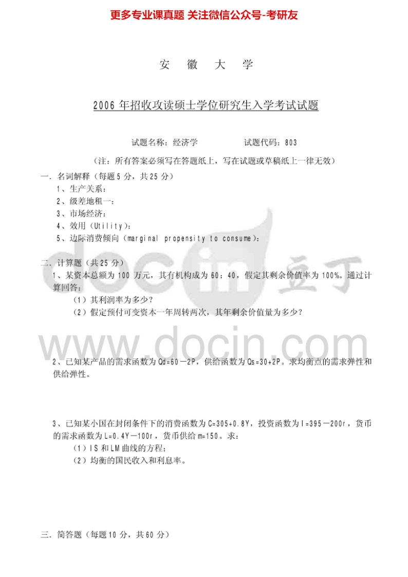 安徽大学西方经济学(含微观宏观经济学)2004-2007历年真题及答案考研真题汇编猴哥6个月前发布关注私信3.13MB35页08521安徽大学西方经济学(含微观宏观经济学)2004-2007历年真题及答案考研真题汇编此内容为免费资源,请登录后查看¥0 登录查看免费资源 第1页 / 共35页 第2页 / 共35页 第3页 / 共35页 第4页 / 共35页 第5页 / 共35页 该文档为免费文档,您可直接下载完整版进行阅读 © 版权声明文章版权归作者所有,未经允许请勿转载。THE END考研专业课 喜欢就支持一下吧点赞21赞赏 分享QQ空间微博QQ好友海报分享复制链接收藏