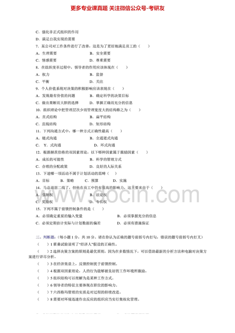 安徽大学813管理2006年考研真题猴哥6个月前发布关注私信0.70MB3页06239安徽大学813管理2006年考研真题此内容为免费资源,请登录后查看¥0 登录查看免费资源 第1页 / 共3页 第2页 / 共3页 第3页 / 共3页 已完成全部阅读,共3页 © 版权声明文章版权归作者所有,未经允许请勿转载。THE END《安徽大学》(813)俄语综合知识考研资料考研专业课 喜欢就支持一下吧点赞39赞赏 分享QQ空间微博QQ好友海报分享复制链接收藏