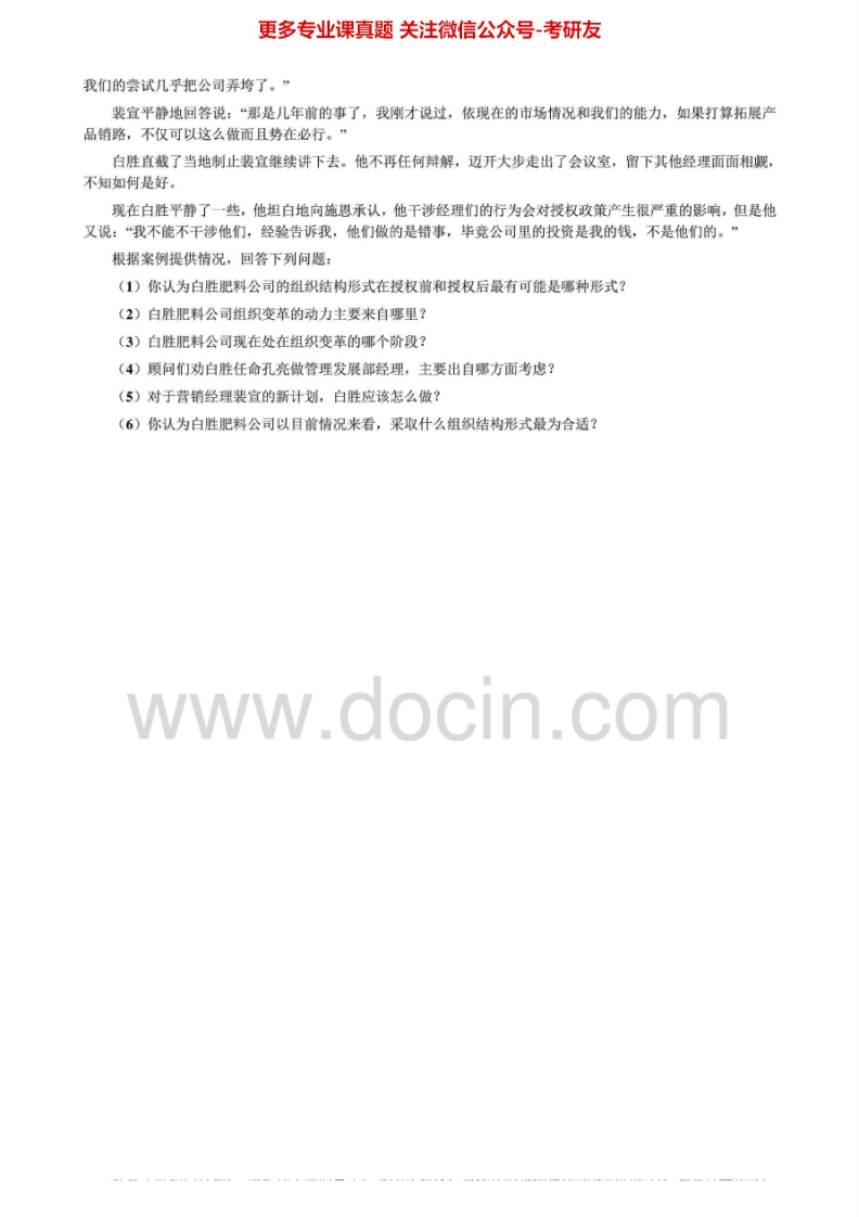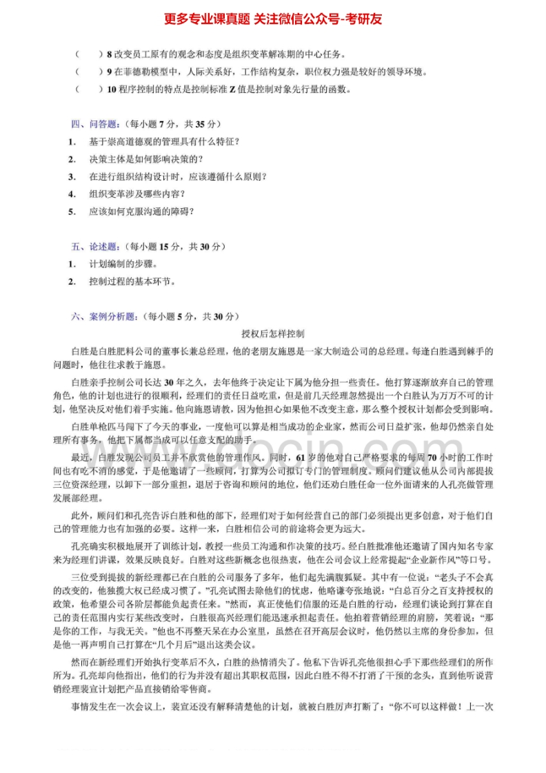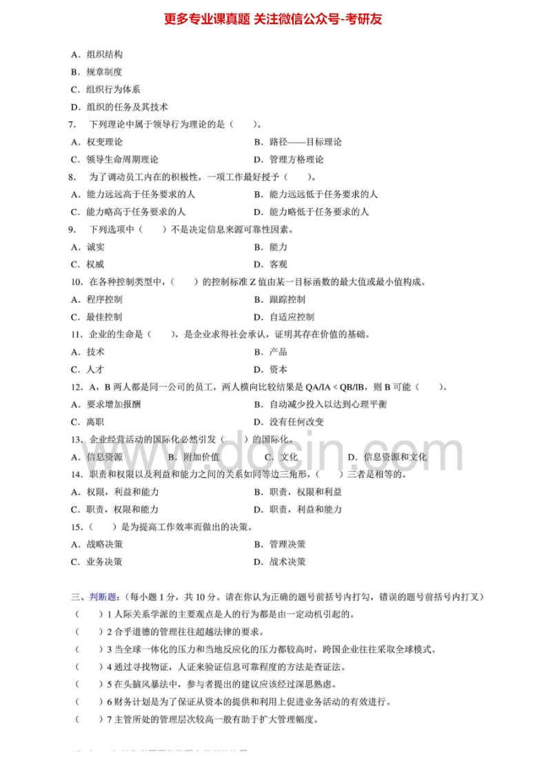 安徽大学813管理学2007年考研真题猴哥6个月前发布关注私信1.06MB4页09659安徽大学813管理学2007年考研真题此内容为免费资源,请登录后查看¥0 登录查看免费资源 第1页 / 共4页 第2页 / 共4页 第3页 / 共4页 第4页 / 共4页 已完成全部阅读,共4页 © 版权声明文章版权归作者所有,未经允许请勿转载。THE END《安徽大学》(813)俄语综合知识考研资料考研专业课 喜欢就支持一下吧点赞59赞赏 分享QQ空间微博QQ好友海报分享复制链接收藏