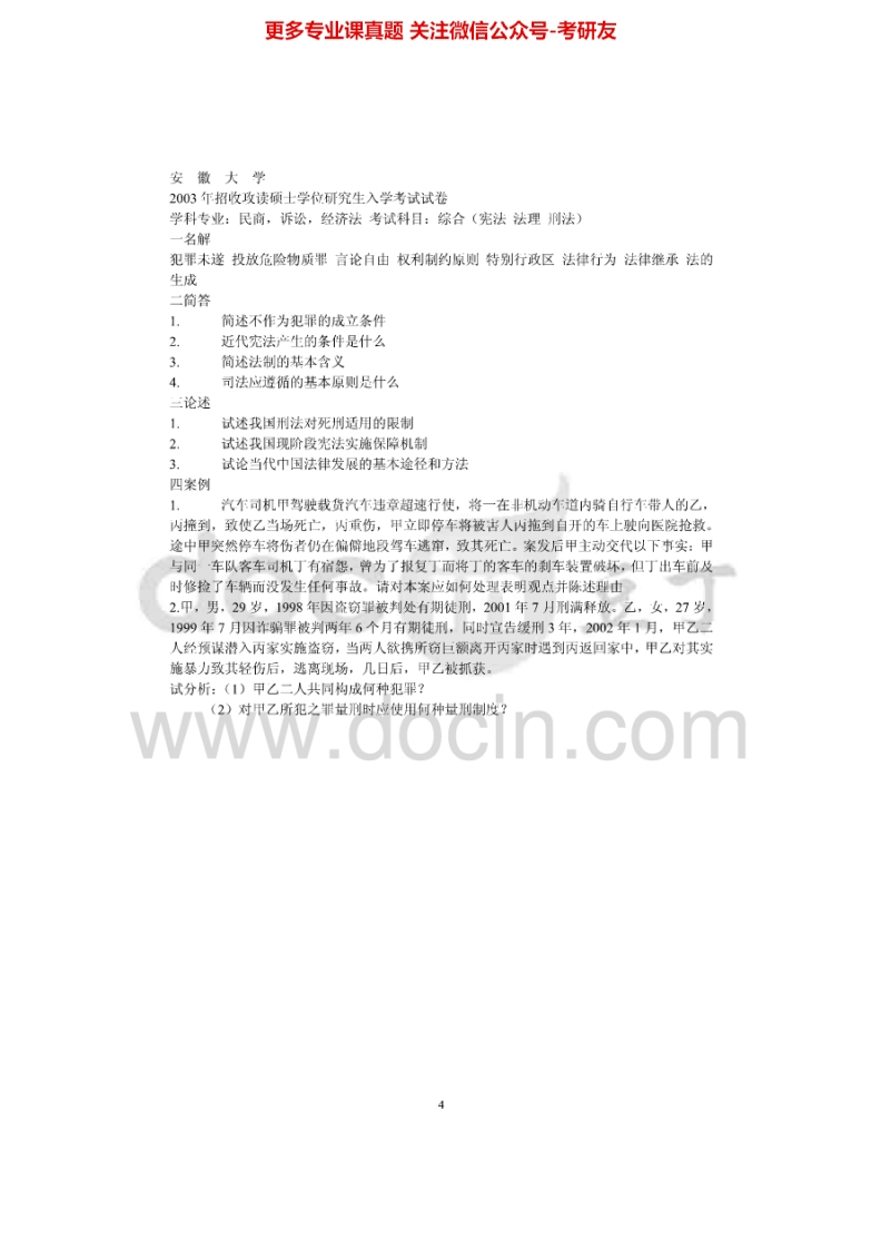安徽大学612法理学、宪法学2003年考研真题猴哥6个月前发布关注私信0.15MB2页04542安徽大学612法理学、宪法学2003年考研真题此内容为免费资源,请登录后查看¥0 登录查看免费资源 第1页 / 共2页 第2页 / 共2页 已完成全部阅读,共2页 © 版权声明文章版权归作者所有,未经允许请勿转载。THE END《安徽大学》(612)法理学、宪法学、行政法学(不含行政诉讼法考研资料考研专业课 喜欢就支持一下吧点赞42赞赏 分享QQ空间微博QQ好友海报分享复制链接收藏