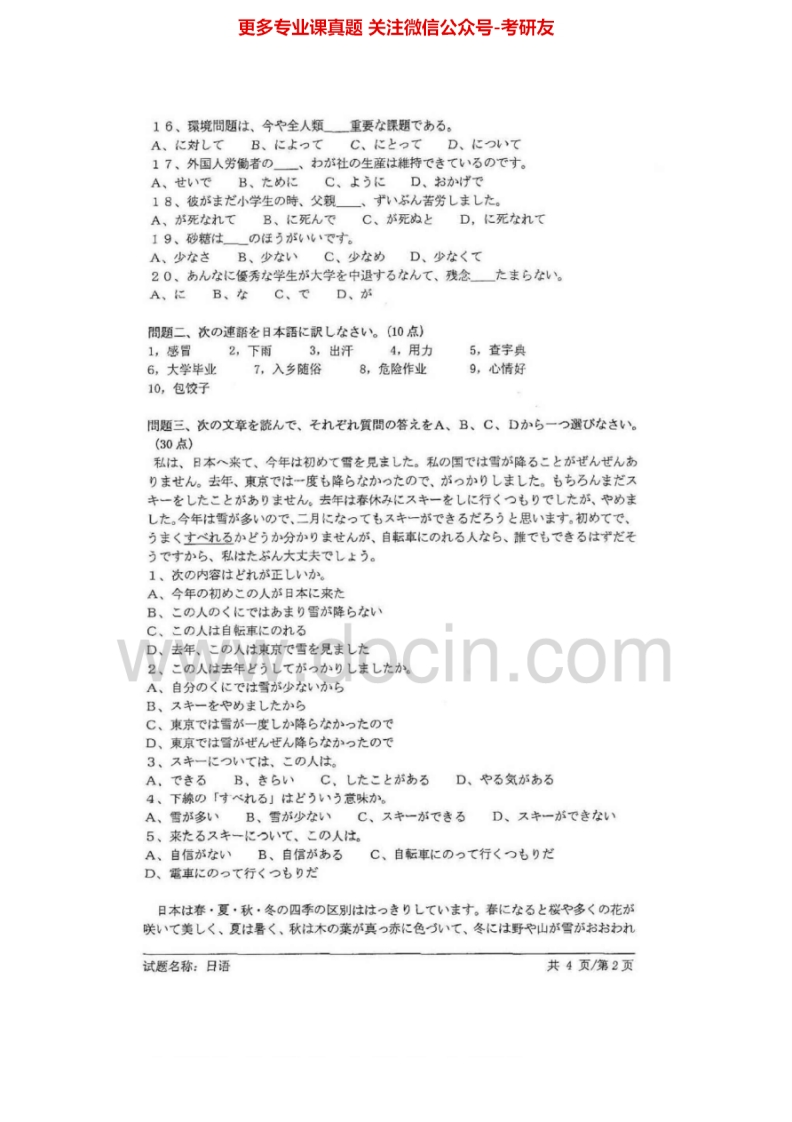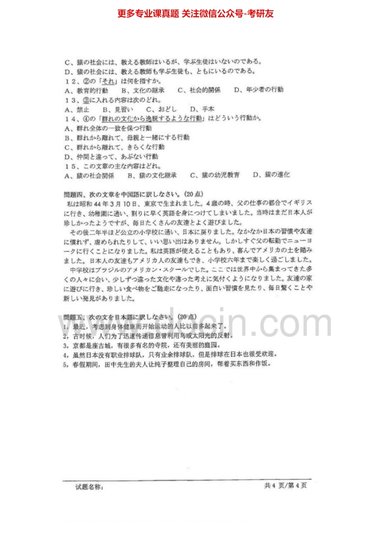 安徽大学243日语2008年考研真题猴哥6个月前发布关注私信0.94MB4页09844安徽大学243日语2008年考研真题此内容为免费资源,请登录后查看¥0 登录查看免费资源 第1页 / 共4页 第2页 / 共4页 第3页 / 共4页 第4页 / 共4页 已完成全部阅读,共4页 © 版权声明文章版权归作者所有,未经允许请勿转载。THE END考研专业课 喜欢就支持一下吧点赞44赞赏 分享QQ空间微博QQ好友海报分享复制链接收藏
