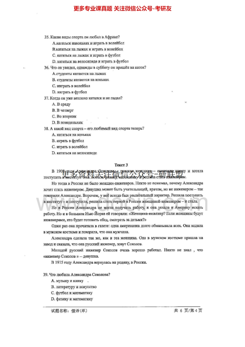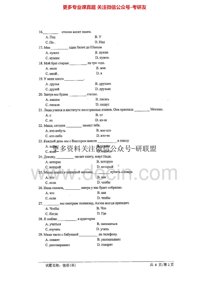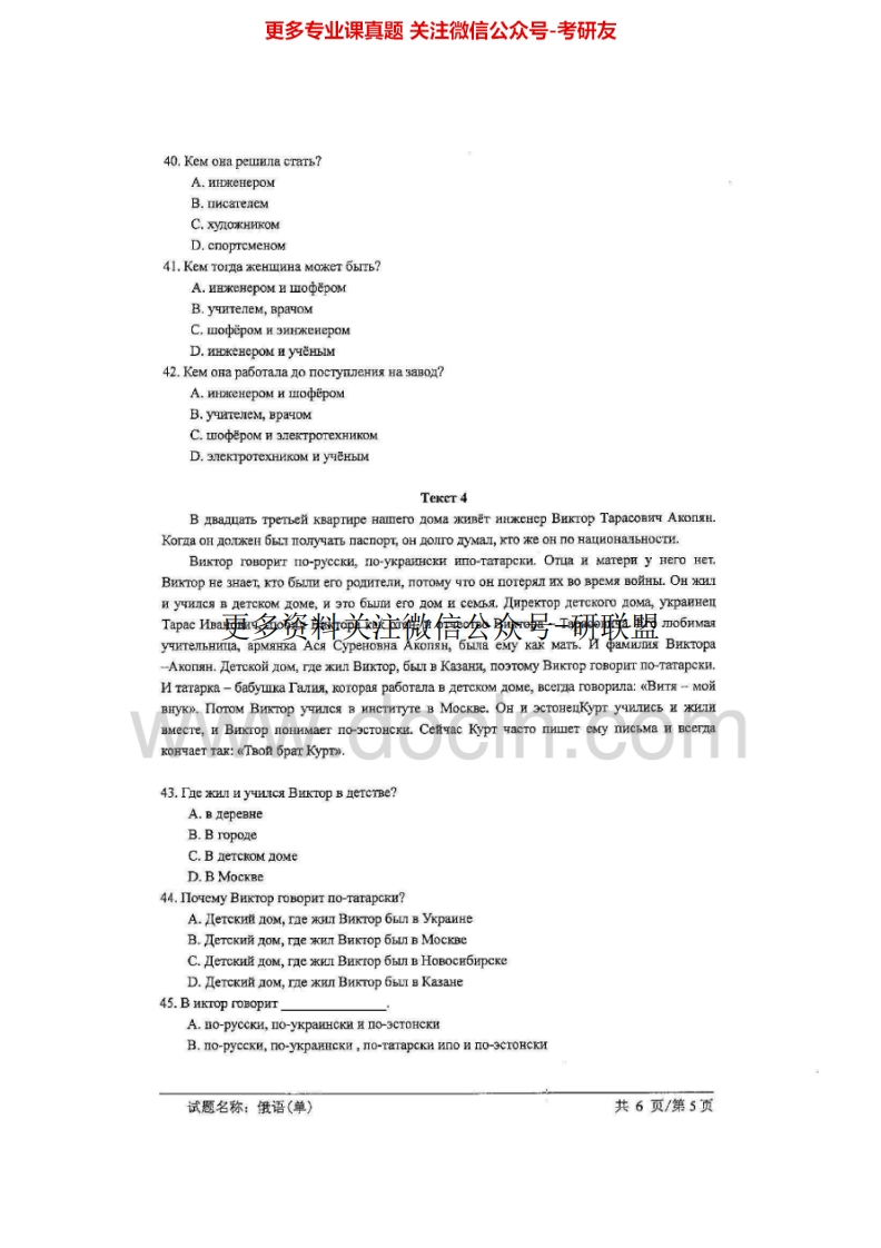 安徽大学242俄语2009年考研真题猴哥6个月前发布关注私信1.29MB6页09221安徽大学242俄语2009年考研真题此内容为免费资源,请登录后查看¥0 登录查看免费资源 第1页 / 共6页 第2页 / 共6页 第3页 / 共6页 第4页 / 共6页 第5页 / 共6页 该文档为免费文档,您可直接下载完整版进行阅读 © 版权声明文章版权归作者所有,未经允许请勿转载。THE END考研专业课 喜欢就支持一下吧点赞21赞赏 分享QQ空间微博QQ好友海报分享复制链接收藏