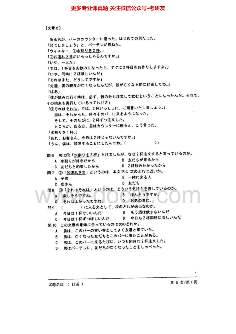 安徽大学243二外日语2010年考研真题猴哥6个月前发布关注私信1.75MB6页06035安徽大学243二外日语2010年考研真题此内容为免费资源,请登录后查看¥0 登录查看免费资源 第1页 / 共6页 第2页 / 共6页 第3页 / 共6页 第4页 / 共6页 第5页 / 共6页 该文档为免费文档,您可直接下载完整版进行阅读 © 版权声明文章版权归作者所有,未经允许请勿转载。THE END考研专业课 喜欢就支持一下吧点赞35赞赏 分享QQ空间微博QQ好友海报分享复制链接收藏