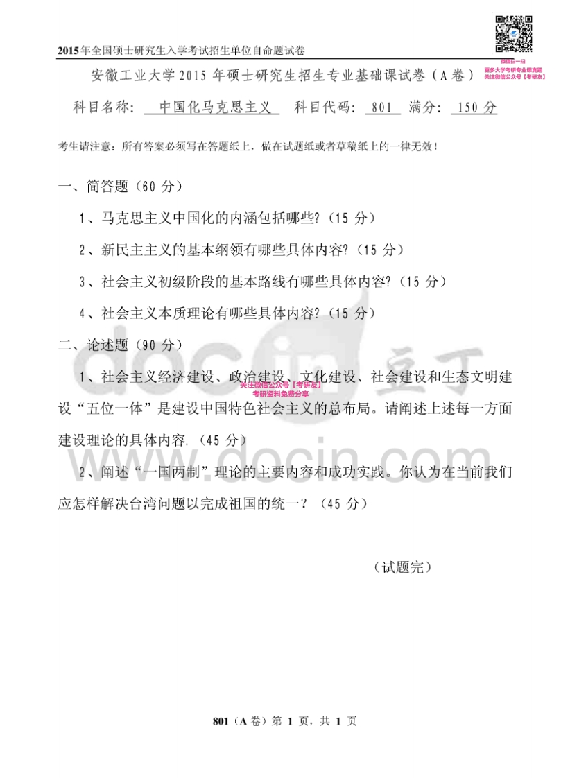 安徽工业大学801中国化马克思主义理论与实践2014-2015考研真题汇编猴哥6个月前发布关注私信0.17MB2页05730安徽工业大学801中国化马克思主义理论与实践2014-2015考研真题汇编此内容为免费资源,请登录后查看¥0 登录查看免费资源 第1页 / 共2页 第2页 / 共2页 已完成全部阅读,共2页 © 版权声明文章版权归作者所有,未经允许请勿转载。THE END《安徽工业大学》(801)马克思主义中国化理论与实践考研资料考研专业课 喜欢就支持一下吧点赞30赞赏 分享QQ空间微博QQ好友海报分享复制链接收藏
