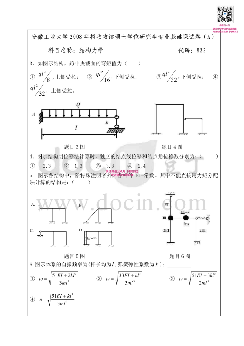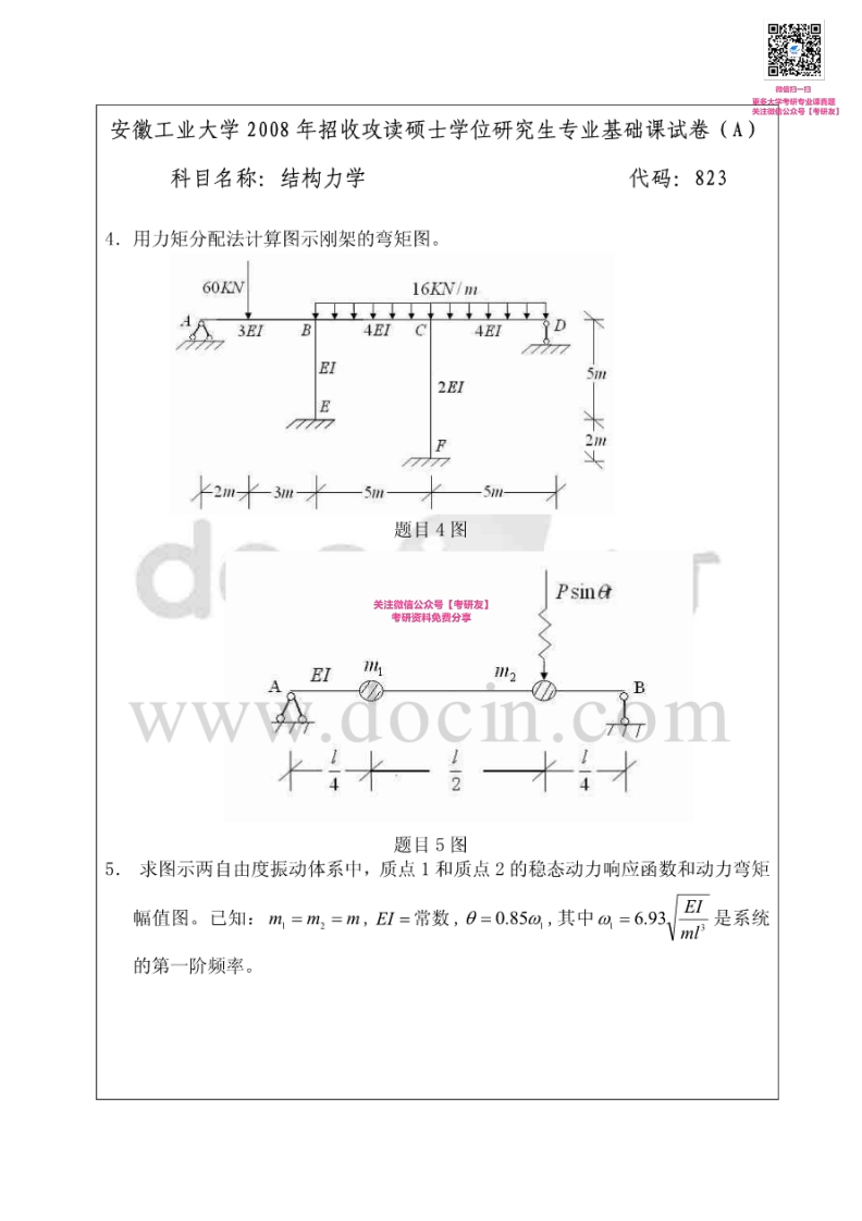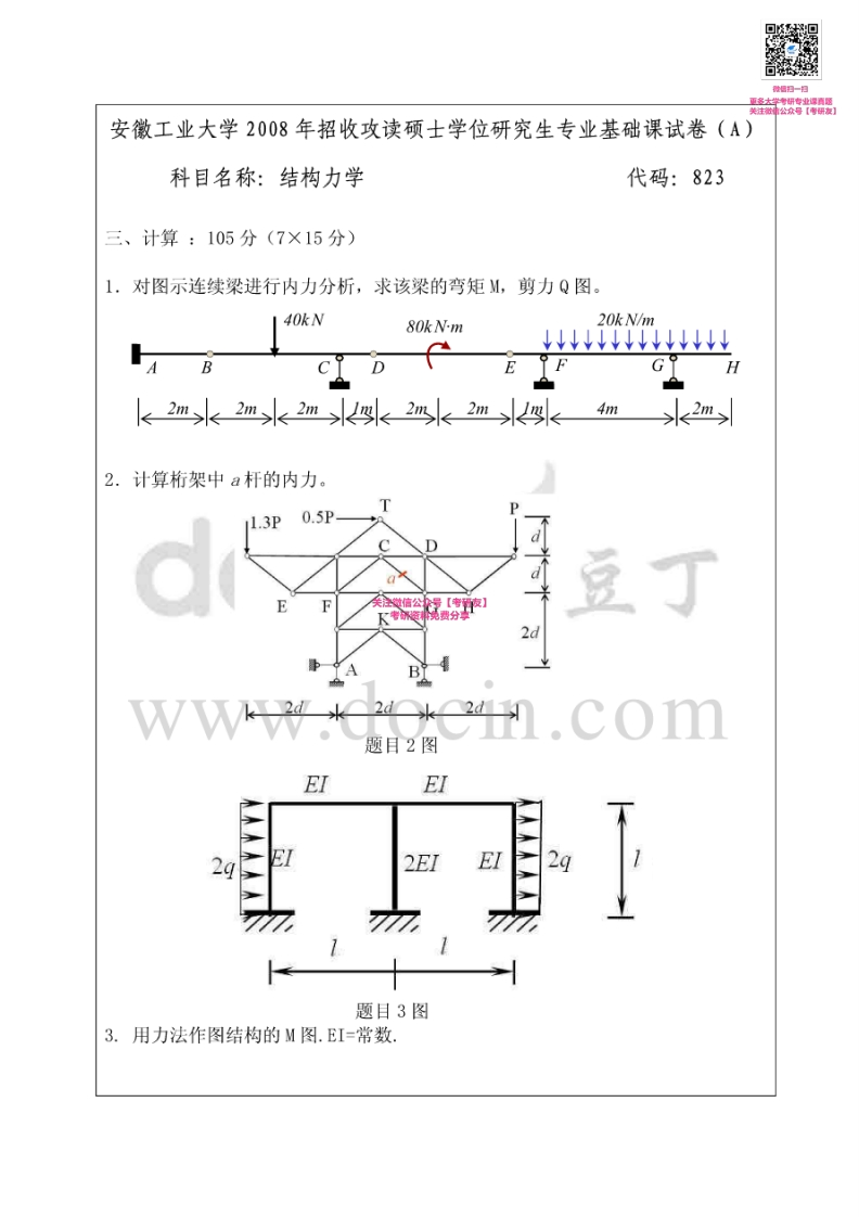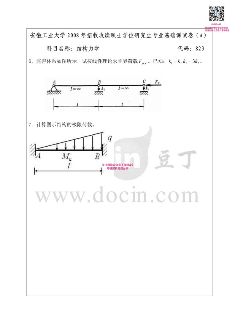 安徽工业大学823结构力学2008、2014-2015考研真题汇编【猴哥6个月前发布关注私信1.06MB10页06756安徽工业大学823结构力学2008、2014-2015考研真题汇编【此内容为免费资源,请登录后查看¥0 登录查看免费资源 第1页 / 共10页 第2页 / 共10页 第3页 / 共10页 第4页 / 共10页 第5页 / 共10页 该文档为免费文档,您可直接下载完整版进行阅读 © 版权声明文章版权归作者所有,未经允许请勿转载。THE END《安徽工业大学》(823)结构力学考研资料考研专业课 喜欢就支持一下吧点赞56赞赏 分享QQ空间微博QQ好友海报分享复制链接收藏