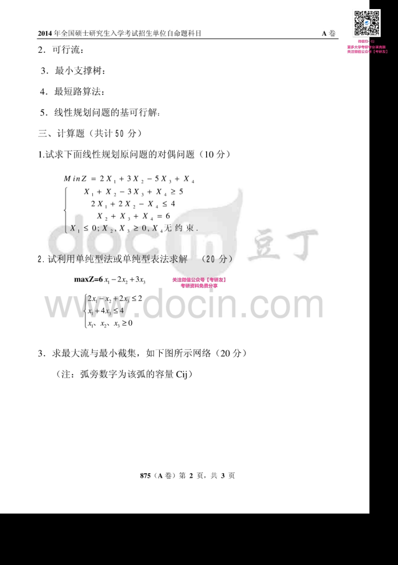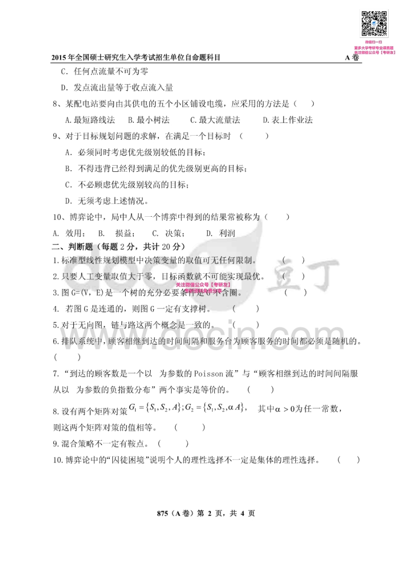 安徽工业大学875运筹学2014-2015考研真题汇编【猴哥6个月前发布关注私信0.52MB7页05529安徽工业大学875运筹学2014-2015考研真题汇编【此内容为免费资源,请登录后查看¥0 登录查看免费资源 第1页 / 共7页 第2页 / 共7页 第3页 / 共7页 第4页 / 共7页 第5页 / 共7页 该文档为免费文档,您可直接下载完整版进行阅读 © 版权声明文章版权归作者所有,未经允许请勿转载。THE END《安徽工业大学》(875)运筹学考研资料考研专业课 喜欢就支持一下吧点赞29赞赏 分享QQ空间微博QQ好友海报分享复制链接收藏